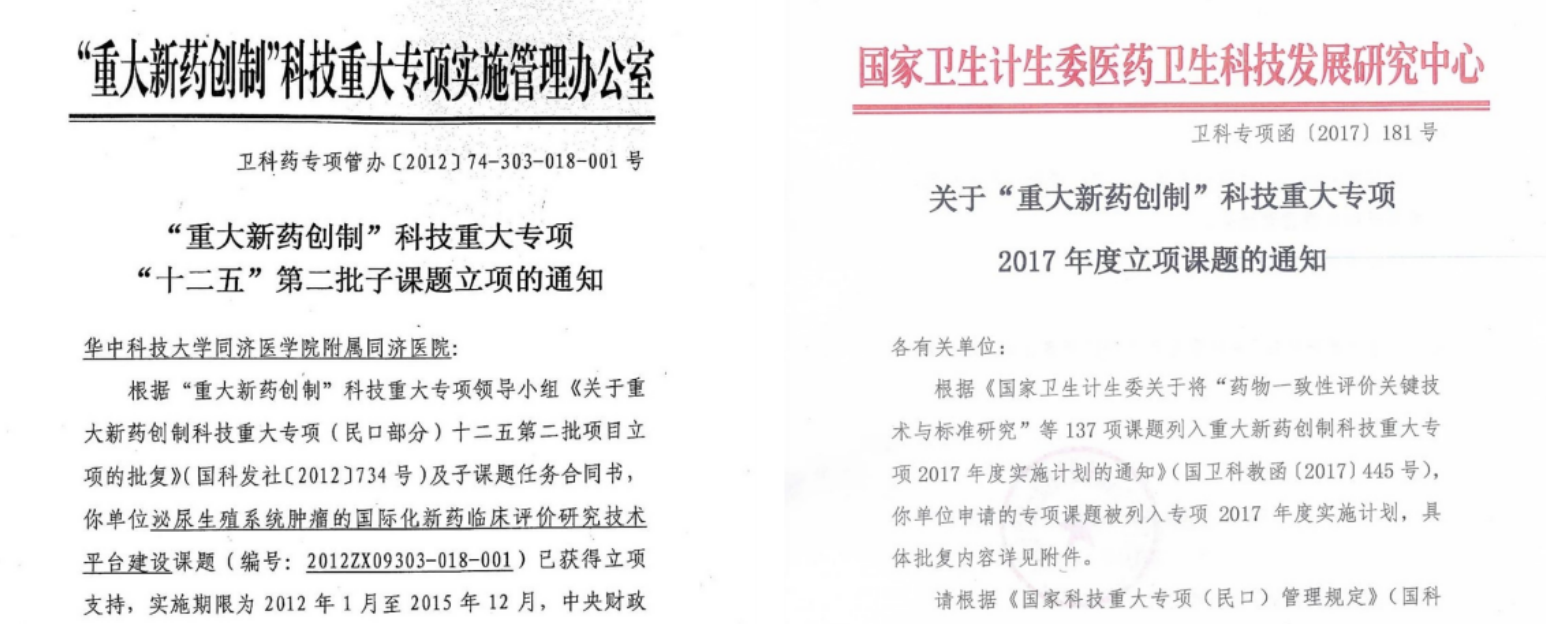 1)“十二五”课题:泌尿生殖系统肿瘤的国际化新药临床研究技术平台建设;
