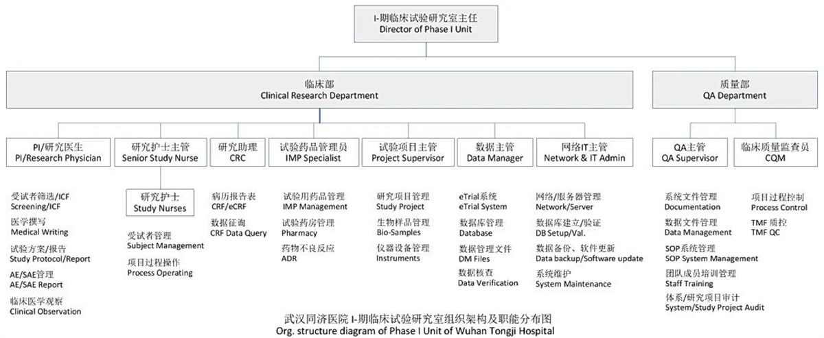 同济医院I期临床试验研究室隶属于华中科技大学同济医学院附属同济医院国家药品临床试验机构,分为临床部和质量部。