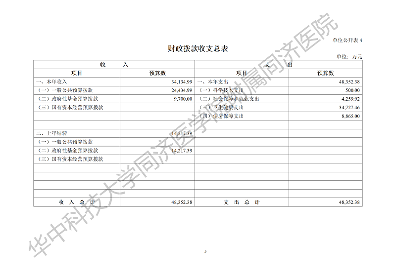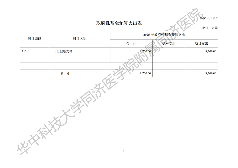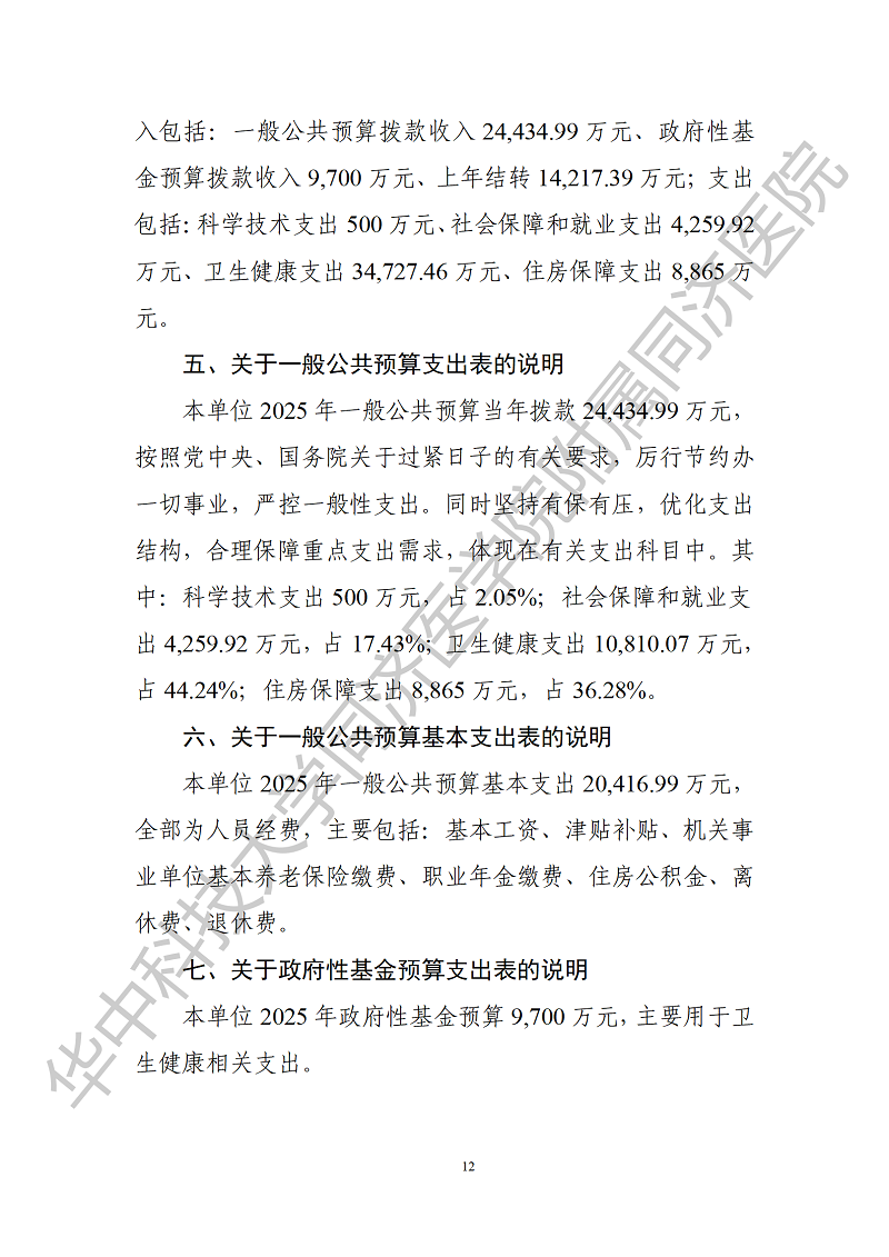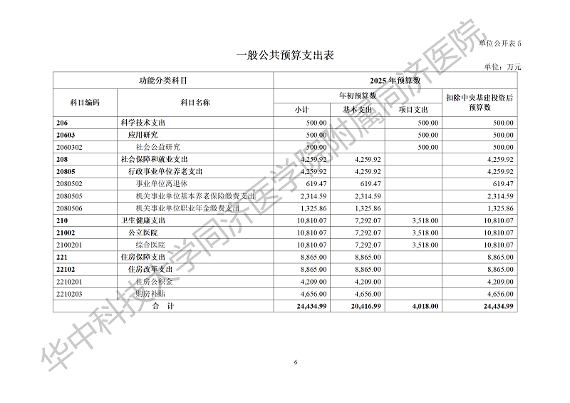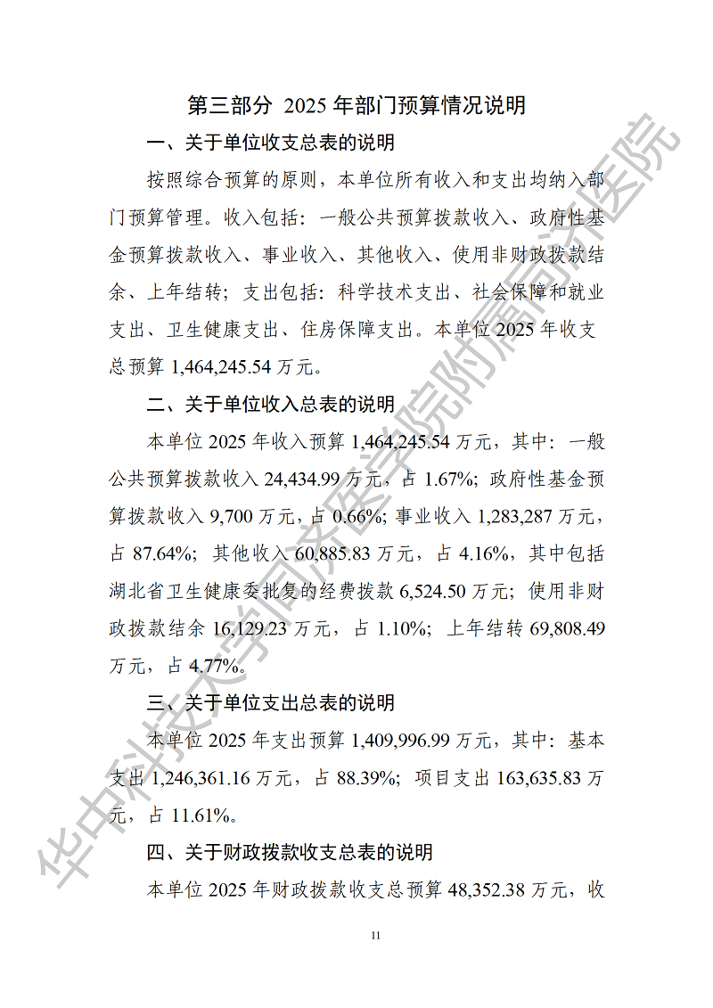 华中科技大学同济医学院附属同济医院2025年部门预算公示