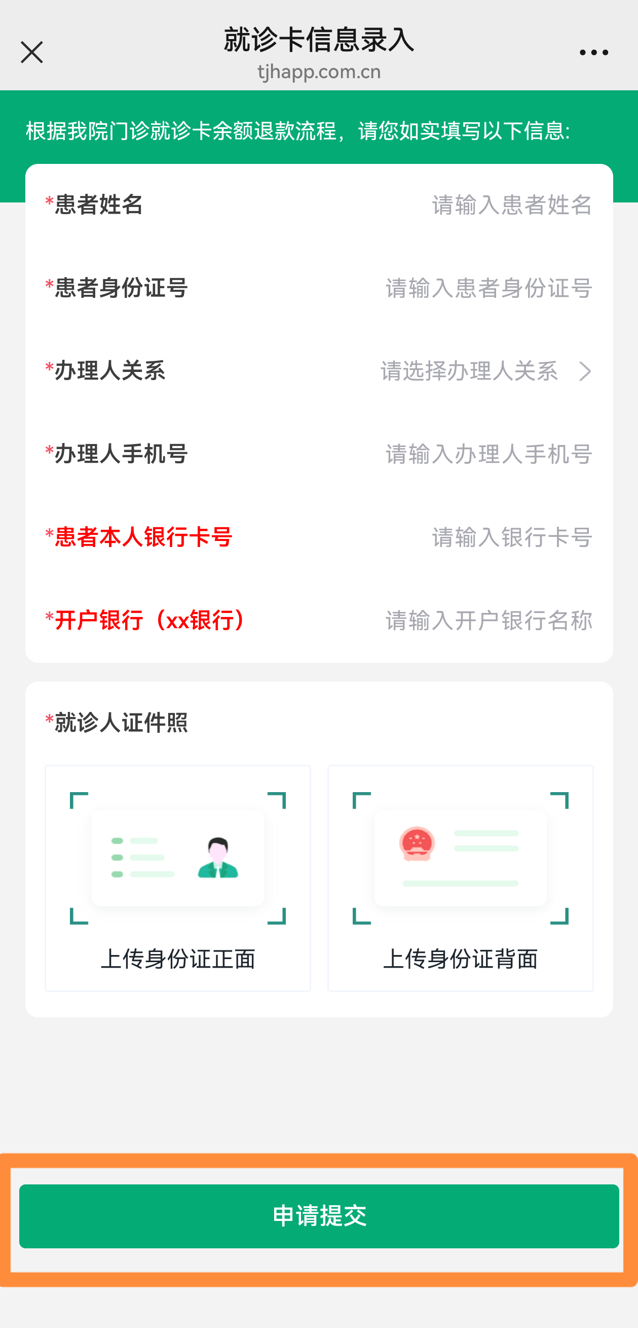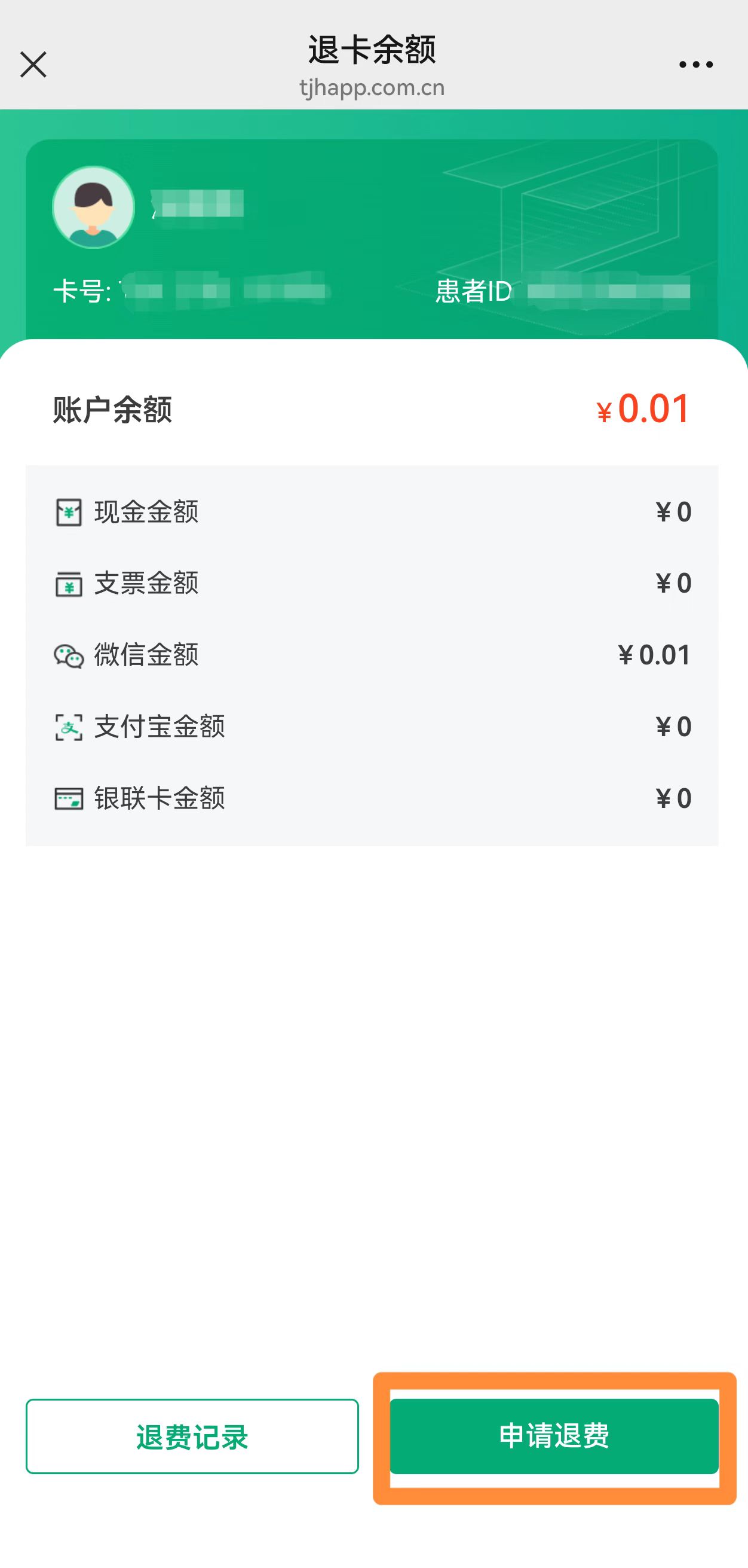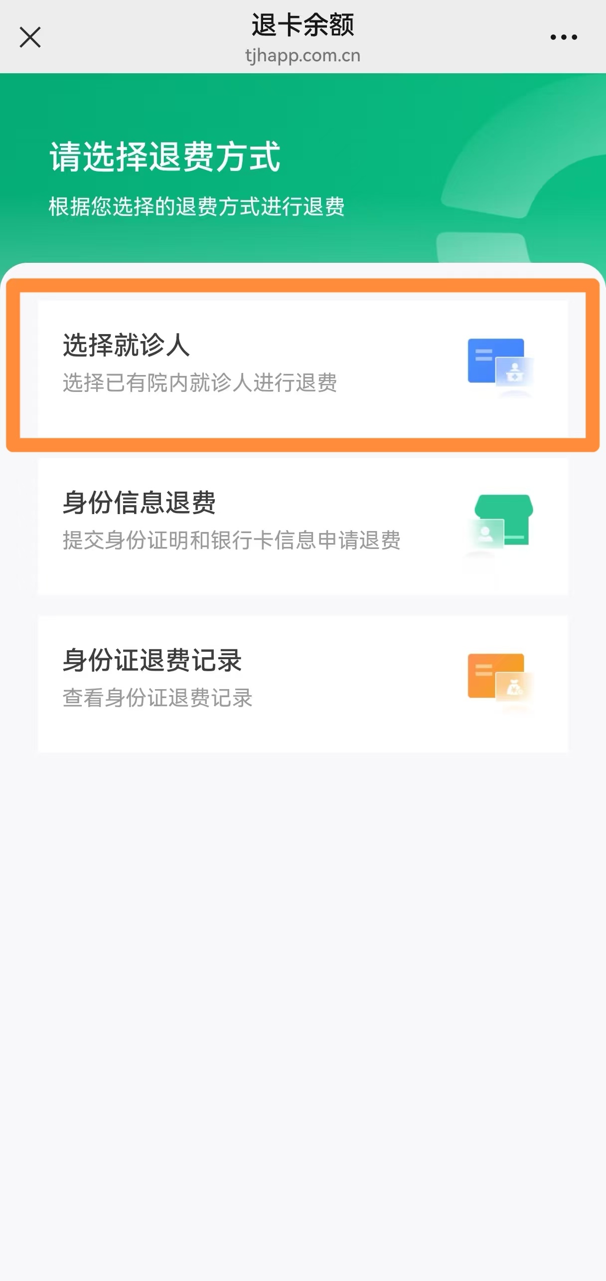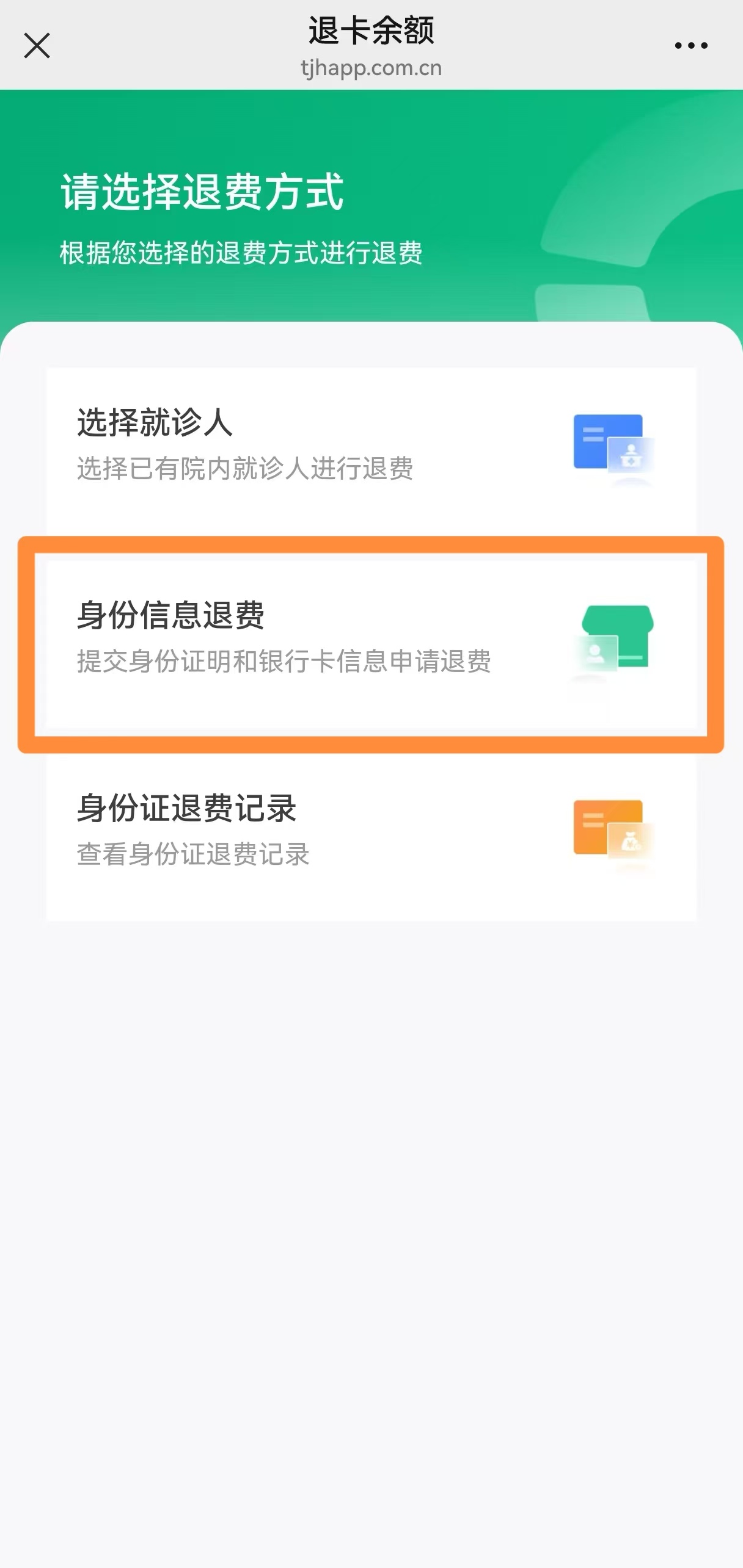(二)方式二:身份信息退费(适用于未绑定就诊卡的情形)