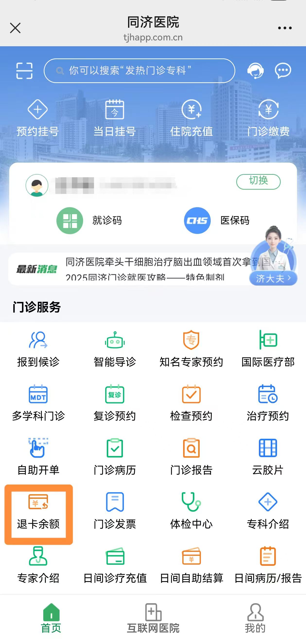 同济医院关于清退门诊就诊卡预交金的公告