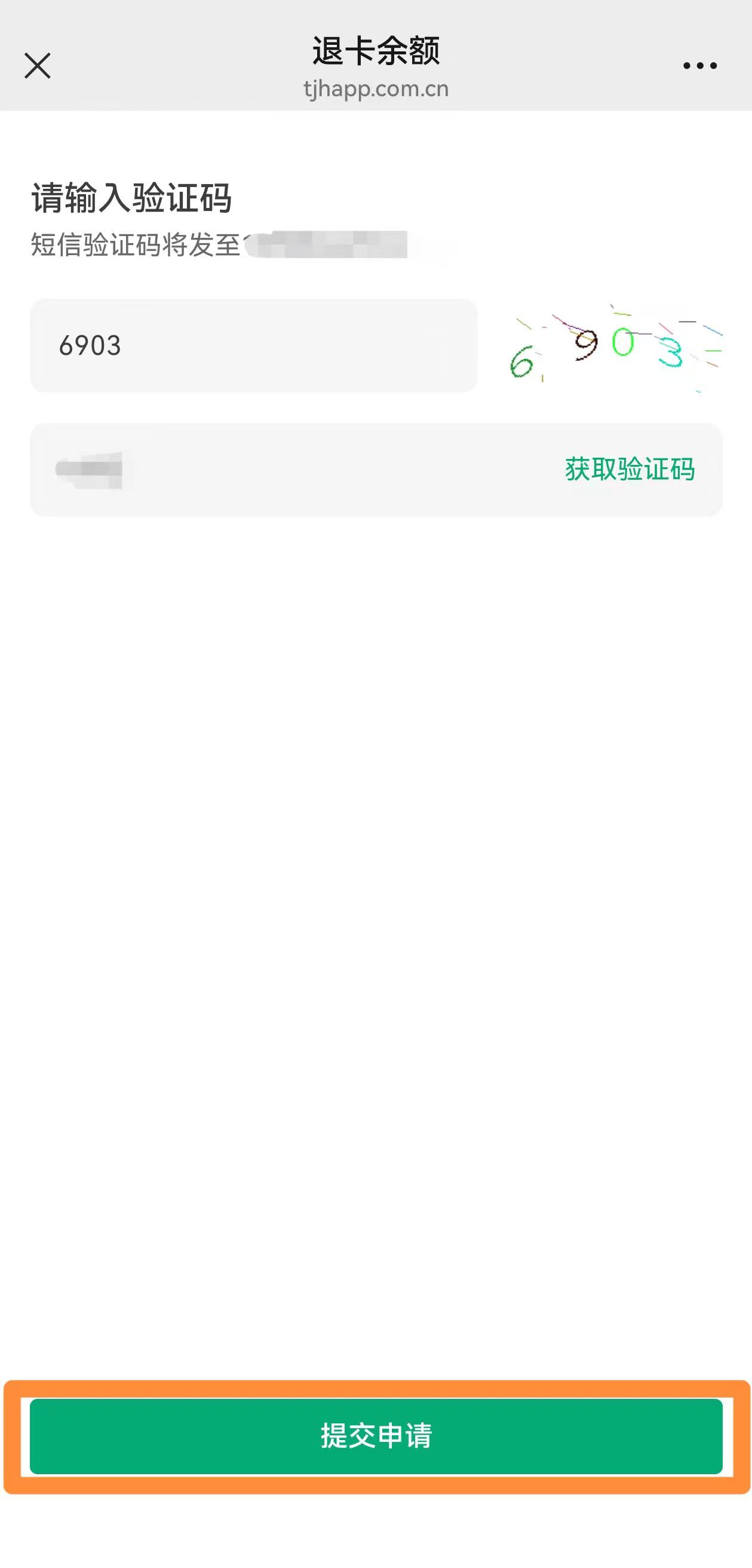 智慧医疗-门诊服务菜单栏下,点击【退卡余额】——点击【选择就诊人】——选定就诊人(就诊人可添加)——点击【申请退费】——填写【验证码】——点击【提交申请】。