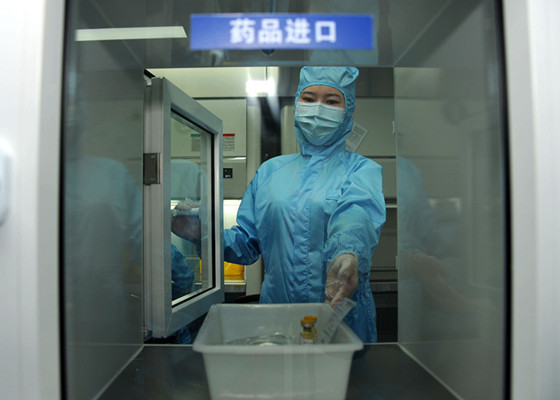 9日上午9点30分,第一袋贴上“出生证”的化疗成品输液药物被送往头颈肿瘤病区孙先生的病床边。这袋小小的药品,来自中法新城院区刚刚成立的静脉用药调配中心,经过了“药师审方关”,“百级层流生物安全配药关”和“全流程监测关”三关,顺利输入孙先生体内。