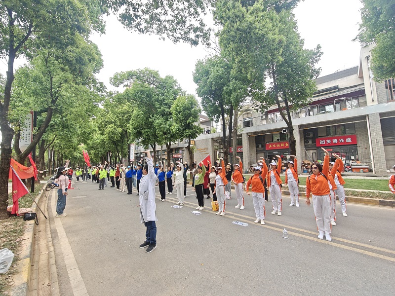 同济军山医院“八段锦”助力川江池社区爱国卫生月健康徒步活动