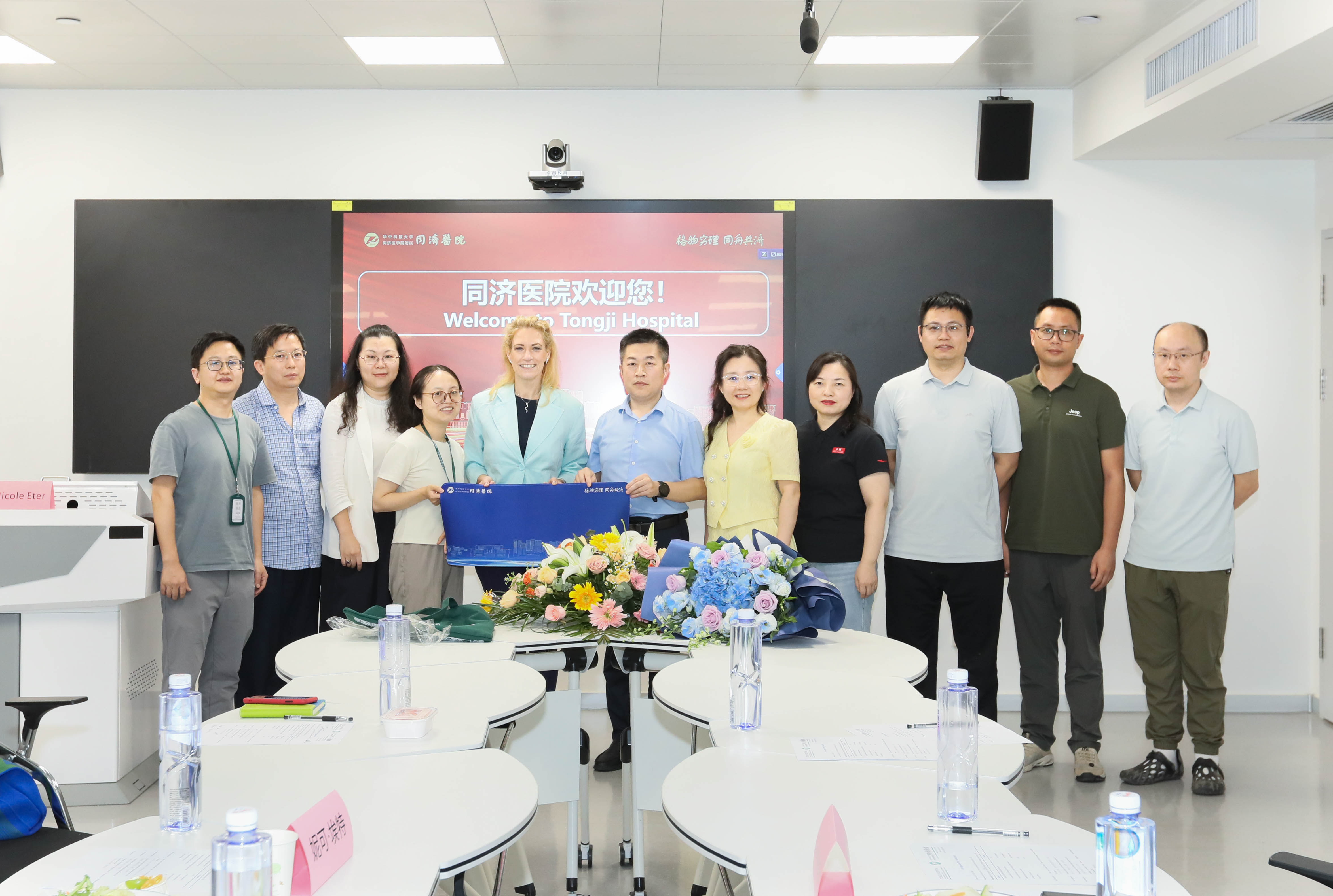 7 月 15 日,受华中科技大学同济医学院第二临床学院副院长孙旭芳邀请,德国明斯特大学眼科医院院长、眼科主任 Dr. Nicole Eter 来访同济医院。 Dr. Nicole Eter 是国际知名的玻璃体视网膜外科专家,临床专长涵盖玻璃体视网膜手术、白内障手术、青光眼手术及角膜移植等。同济医院眼科主任李贵刚教授代表科室对Dr. Nicole Ete表示热烈欢迎和诚挚的问候。眼科副主任刘荣、刘俊博士等参与接待。
