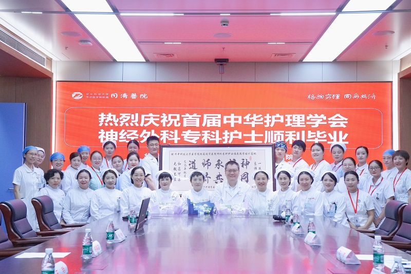 9月12日,同济医院神经外科作为中华护理学会神经外科专科护士京外临床培训基地,迎来首届专科护士培训结业典礼。来自全国多个省市的13名学员圆满完成四周系统培训,以优异成绩为临床实践画上句号。同济医院神经外科主任舒凯、护理部副主任刘于、外科总护士长周雁荣等医院代表与全体学员、带教老师共同参会。