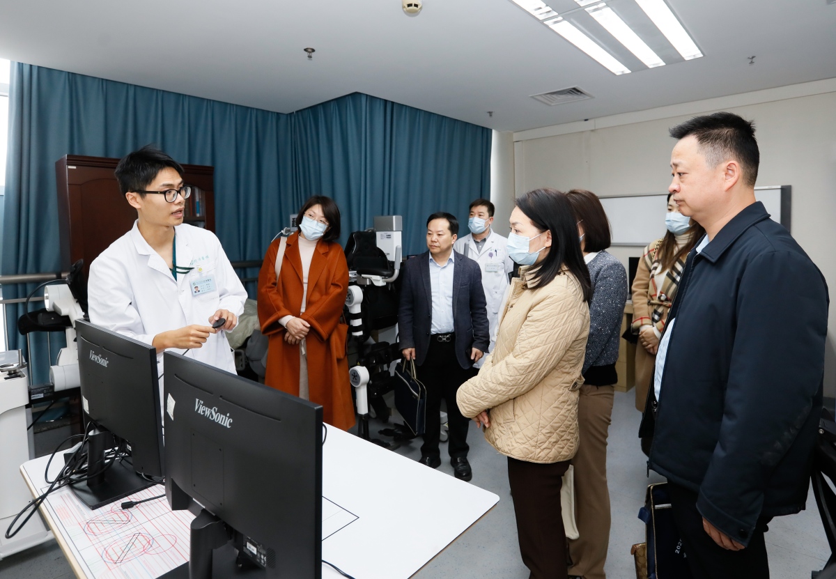 我院脑机接口研究院专家、神经外科黄逸民博士向调研组详细介绍了脑机接口研究型病房建设、临床研究进展及脑机接口技术在神经疾病治疗中的应用前景,实地展示了我院在该领域的科研实力与创新成果。随后,脑机接口研究院专家、神经内科副主任医师张萍系统介绍了我院在脑机接口技术研发、临床转化试验、医工交叉创新平台建设等方面取得的阶段性成果及未来发展规划。