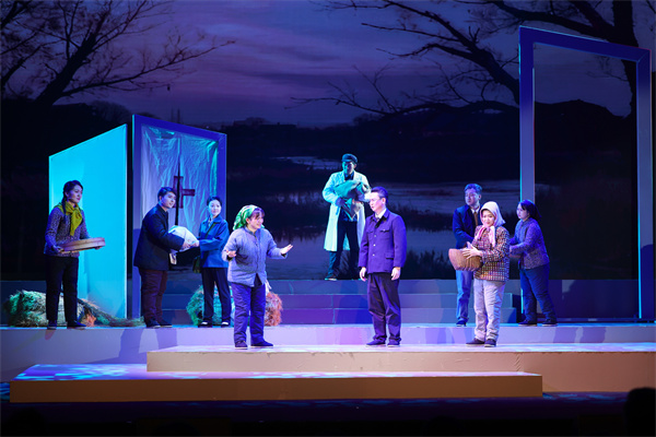 初读剧本,见马大娘台词不多、故事简单,只是个接受裘老救治的晚期血吸虫病患者,便以为只需记好台词和站位即可。但是随着导演组带领我们做人物性格分析,打磨台词,让我认识到同一句话因语气、语调、重音不同而呈现出的万千力量。我开始练发声、琢磨角色细节,学习借鉴优秀演员的表演。