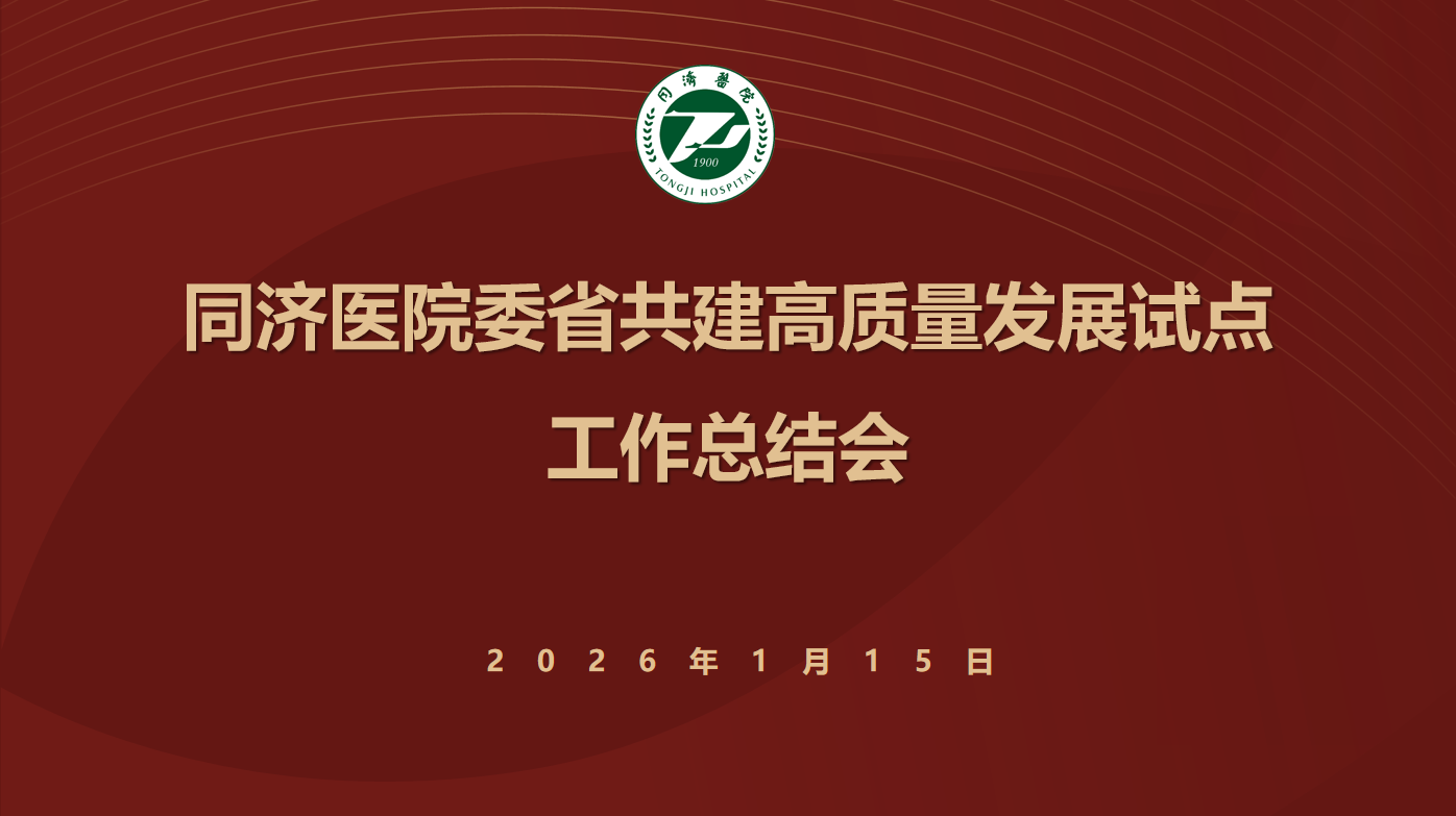 1 月 15 日下午,华中科技大学同济医学院附属同济医院召开委省共建高质量发展试点工作组工作总结会。会议深入贯彻国家公立医院高质量发展战略导向,全面落实 14 家委省共建试点医院任务要求,系统总结 2025 年试点工作成效,科学谋划 2026 年重点任务,凝聚共识、加压奋进,推动医院高质量可持续发展。院领导常务副院长廖家智、党委副书记严江涛、副院长吴剑宏、总会计师戴小喆、院长助理涂宣成全程指导,全体工作组成员参会,会议由院长办公室常务副主任孙熹主持。