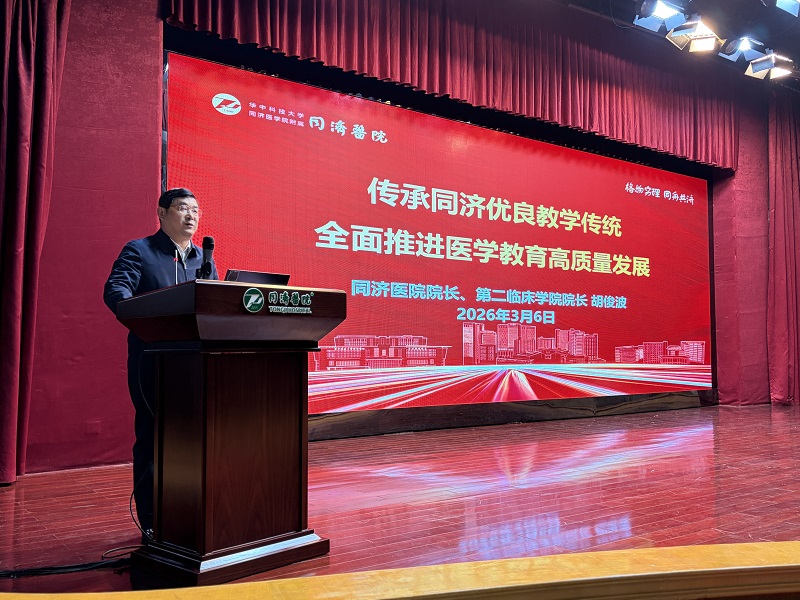 胡俊波以“传承同济优良教学传统,全面推进医学教育高质量发展”为题作报告,系统总结第二临床学院在教学改革与学生培养等方面取得的成果,结合新时代医学教育发展要求明确未来工作重点,勉励同学们以饱满热情和扎实专业素养迎接新学期挑战。