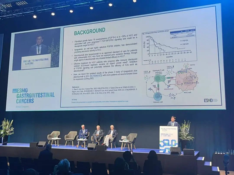 在当地时间7月2日召开的欧洲肿瘤内科学会胃肠肿瘤大会上,由中国科学院院士、同济医院外科学系主任陈孝平团队主导的ABSK-011(Irpagratinib依帕戈替尼)联合阿替利珠单抗治疗FGF19过表达的晚期肝细胞癌(HCC)的Ⅱ期临床研究(ABSK-011-201)结果以“简短口头报告(Mini Oral session)”形式重磅发布,获得了国际学术界的广泛关注与高度认可。