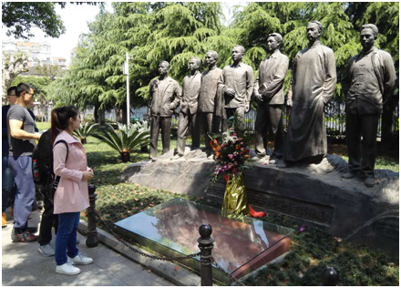 第一党小组成员在中共五大会址纪念馆合影