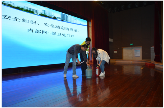 之后,医务处的肖源老师就“依法行医及新形势下的医疗纠纷及防范”为大家进行了解读。肖老师指出:当前中国医患关系紧张,而避免医患纠纷的核心就是提高医疗质量,因此他给予同学们三点忠告:严格遵守医疗原则;具备合格的医疗素质;时刻怀揣责任心。接着,保卫处的吴军老师以“增强安全意识,提高防护能力”为题,向同学们详细介绍了面对各种险情应该采取的正确措施,并且现场为同学们演示了灭火器的使用方法,给大家留下了深刻印象。