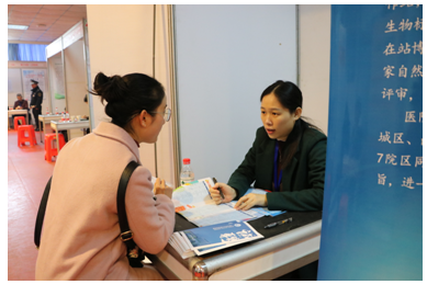 招聘会现场人头攒动,气氛活跃,我们在现场了解到,面对与日俱增的就业压力以及卫生行业多种多样的岗位设置,用人单位和毕业生都有着不同的理解与选择。现场也有许多其他院校赶来参与招聘会的毕业生,这次的招聘会成功地搭建了毕业生与用人单位的供需交流平台。现场一位毕业生告诉我们,通过这次招聘会,他意识到机遇与挑战并存,对自己的职业规划有了新的认识,并将更好的提升自己,融入适合自己的工作岗位。
