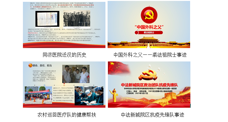 最后,由同济医院2019级硕士研究生第一党支部四个党小组共同讲授《同济医院的红色基因》。从同济医院健康帮扶五十载与同济医院迁汉的历史中,在中国外科之父——裘法祖与2020年度同济医院荆楚楷模的先进事迹中,激发支部全体成员传承红色基因、厚植家国情怀,引导支部成员做到知史爱校、知史爱党、知史爱国。