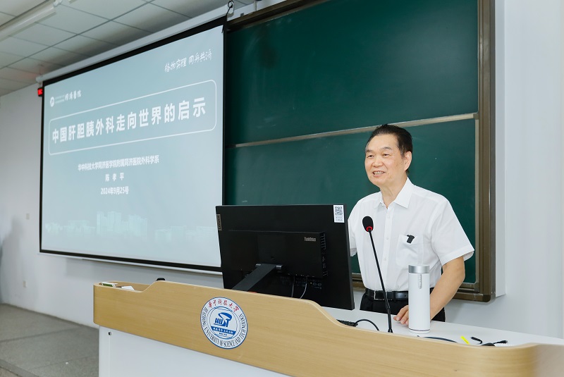9月25日下午,中国科学院院士、同济医院外科学系主任陈孝平教授以《中国肝胆胰外科走向世界的启示》为题讲授第一课,他深情回顾了自己的成长轨迹和丰富的从医经历,鼓励同学们践行终身学习理念,持续精进临床技能。他从“三个历史时期”为切入点,融合“三个不计较”原则——不计较时间、不计较金钱、不计较一时的得失,勉励学生们沉下心来,脚踏实地,秉承严谨求实的科学态度,精益求精于医术,让知识与医德成为支撑远行的坚实基石。陈院士强调,学生们应培养终身学习的习惯和国际学术交流能力,为成为既拥有深厚医学造诣,又能在国际舞台上展现风采的未来医学栋梁奠定坚实基础。