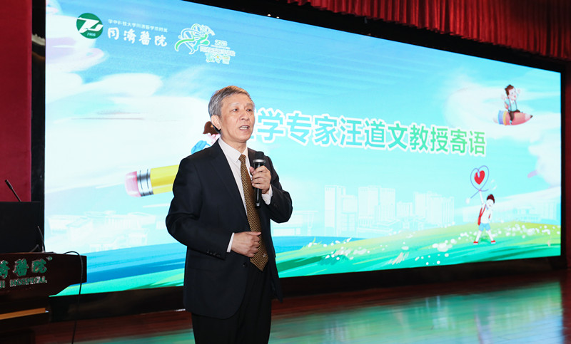 “希望大家能够树立远大理想,落实在每一天的行动中”,同济医院内科学系名誉主任汪道文教授为小营员们做专题讲课。他从一名少年病人说起,讲述医务人员与生命赛跑,全力营救的救治过程,通过回顾同济历史上的名医名家,展现同济人的家国情怀和创造。