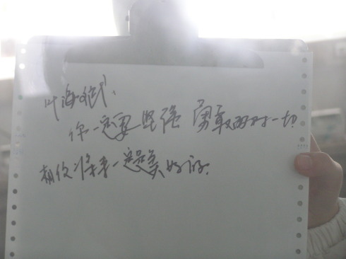 恢复较快的陈妈妈可以写字了,她通过护士传给儿子一段手写的话:“你一定要坚强,勇敢面对一切,相信将来一定是美好的”。