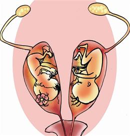 双子宫是先天生殖道异常。由于两侧副中肾管完全未融合,各自发育形成两个子宫和两个宫颈,阴道也分开,左右侧子宫各有单一的输卵管和卵巢。只有两侧卵巢同时排卵,与精子结合并在各个子宫内着床,才有可能形成双子宫双胎。