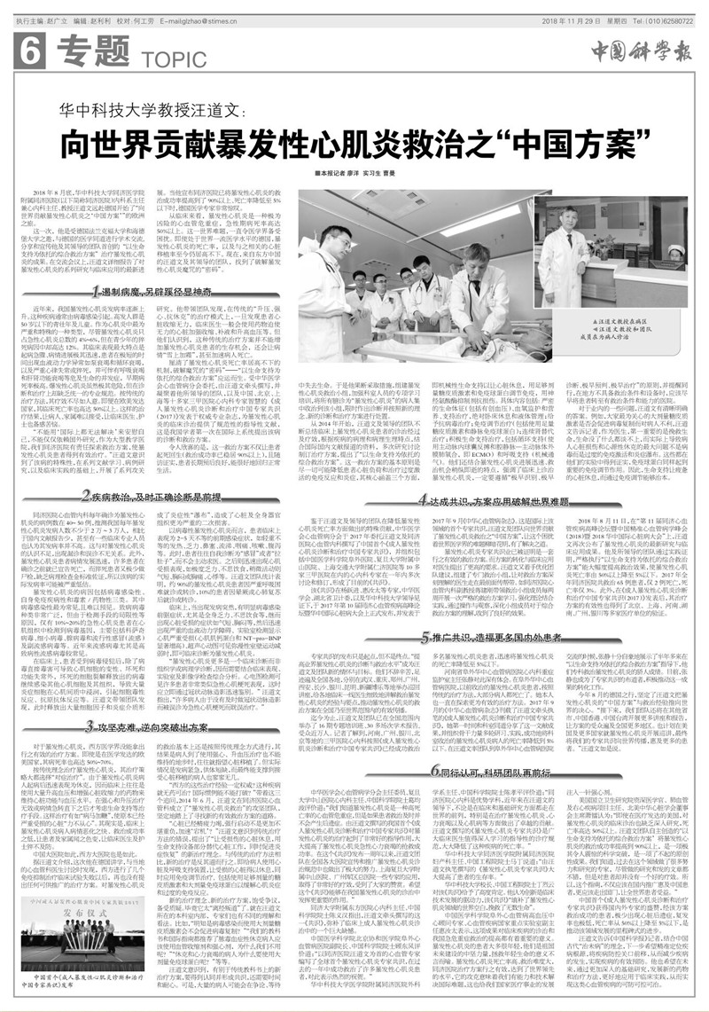 【中国科学报】汪道文:向世界贡献暴发性心肌炎救治之“中国方案”