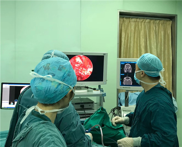 据了解 2013年起至今,同济医院开展导航辅助下的经鼻内镜颅底手术超过500余台。手术适用于各种前颅底、中颅底、后颅底、侧颅底手术和鼻-眶手术,如垂体瘤切除术、鼻-颅沟通性肿瘤切除手术、视神经减压术、脑脊液鼻漏修补术和颅底重建术、翼腭窝和颞下窝肿瘤切除术、眶尖肿瘤切除术、眼内直肌修复术等。