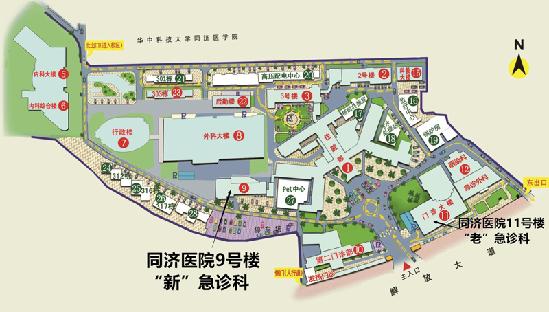 为进一步改善门诊诊疗、就医环境,9月26日(周六)13时起,同济医院急诊科包括急诊内科、急诊外科、急诊神经内科、急诊妇产科、急诊检验、急诊B超等科室将搬迁至9号楼(如图)。