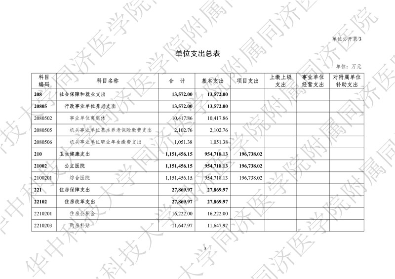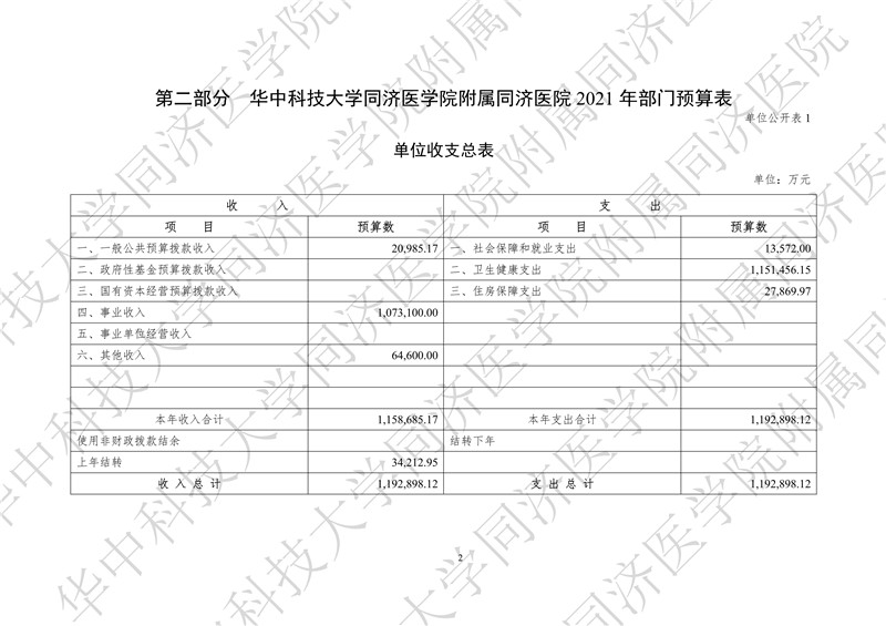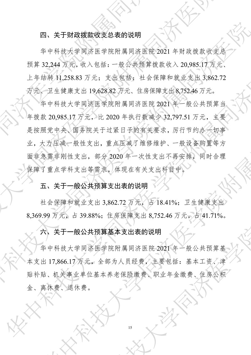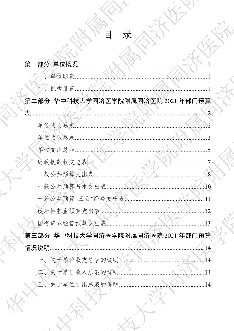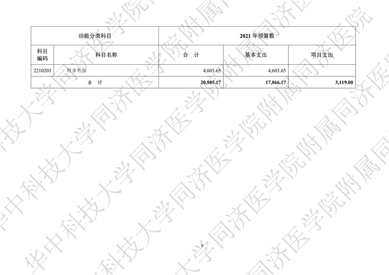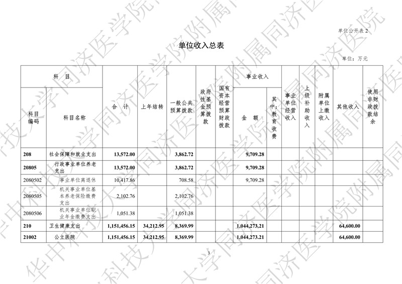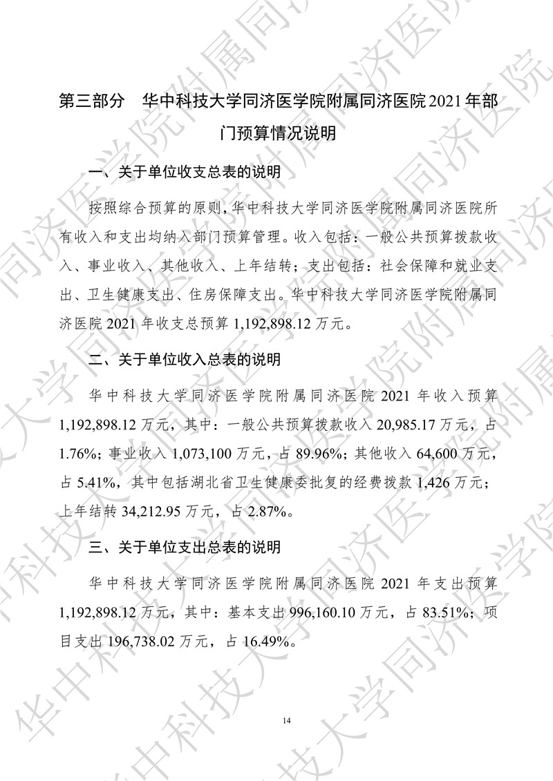 华中科技大学同济医学院附属同济医院2021年部门预算公示