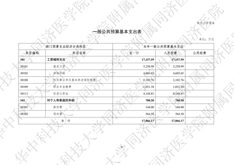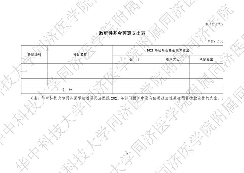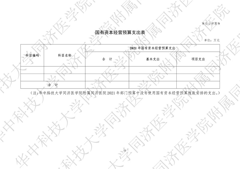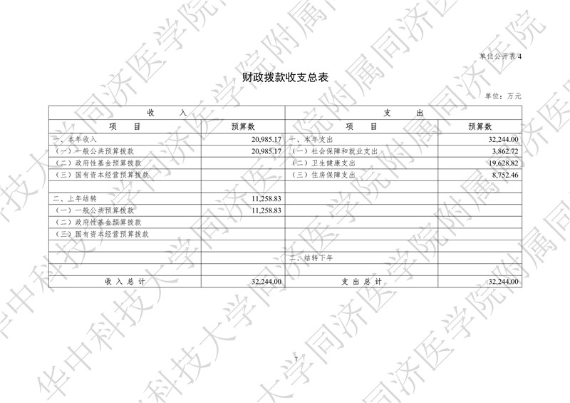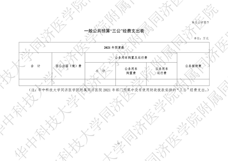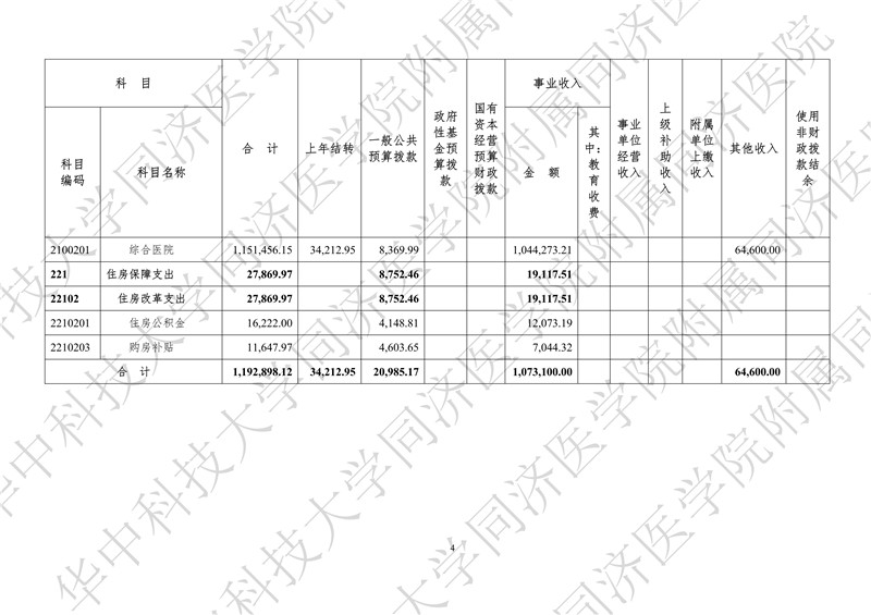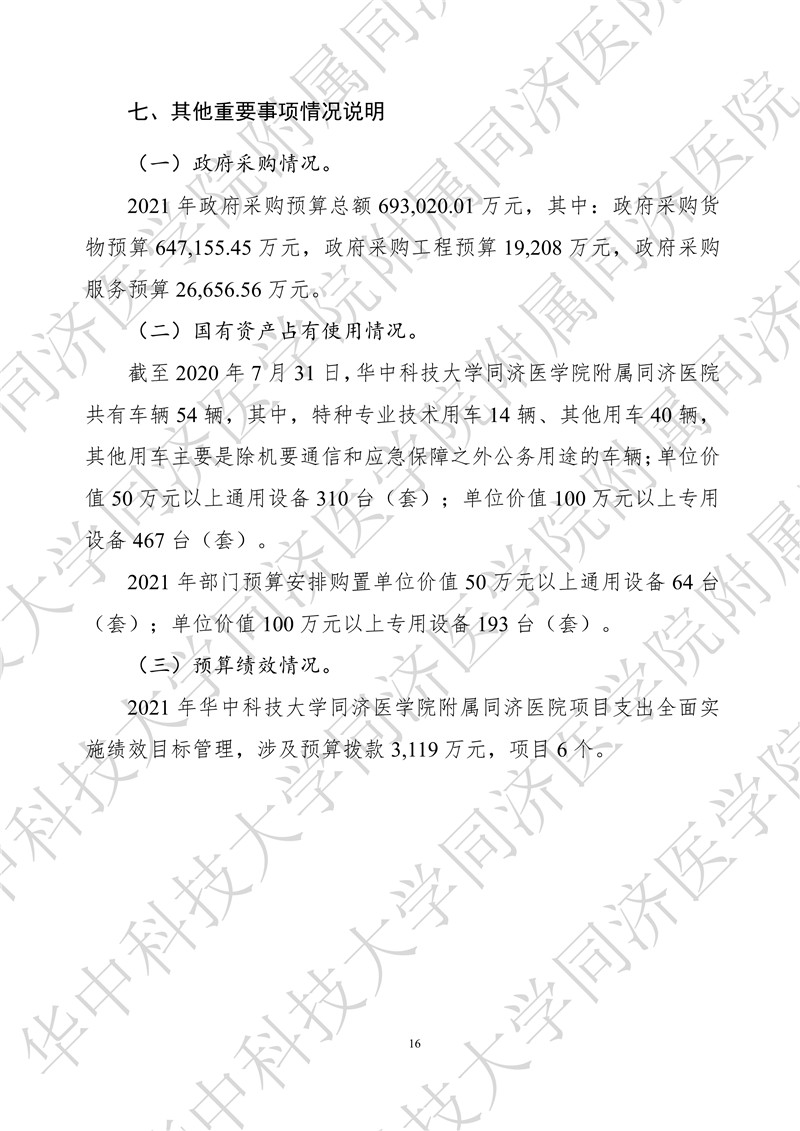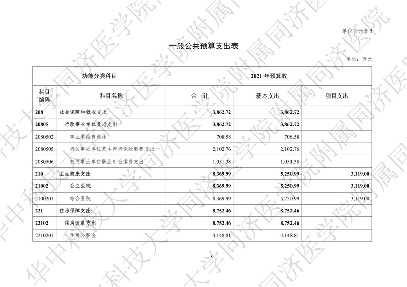 华中科技大学同济医学院附属同济医院2021年部门预算公示