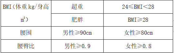 一般来说,体重超过标准体重(男性:身高-105cm,女性:身高-107.5cm)的10%为超重,超过20%为肥胖。此外,还可以通过体重指数、腰围、腰臀比等来进行初步判定(以下为中国标准)。