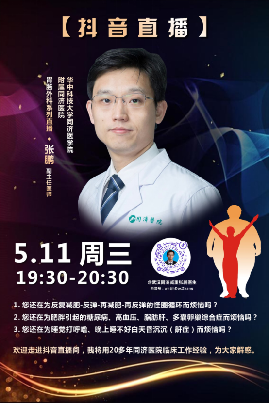 想了解更多减重知识,欢迎关注同济医院胃肠外科张鹏教授抖音号。