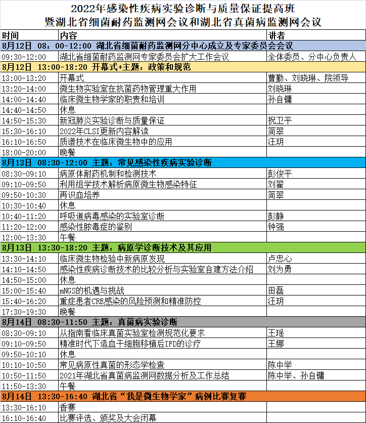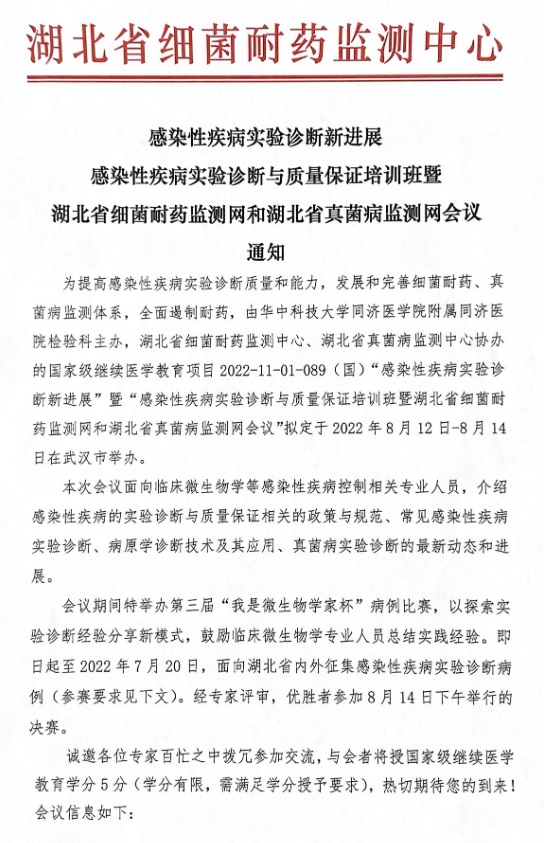 2022年感染性疾病实验诊断与质量保证提高班暨湖北省细菌耐药监测网会议和湖北省真菌病监测网会议