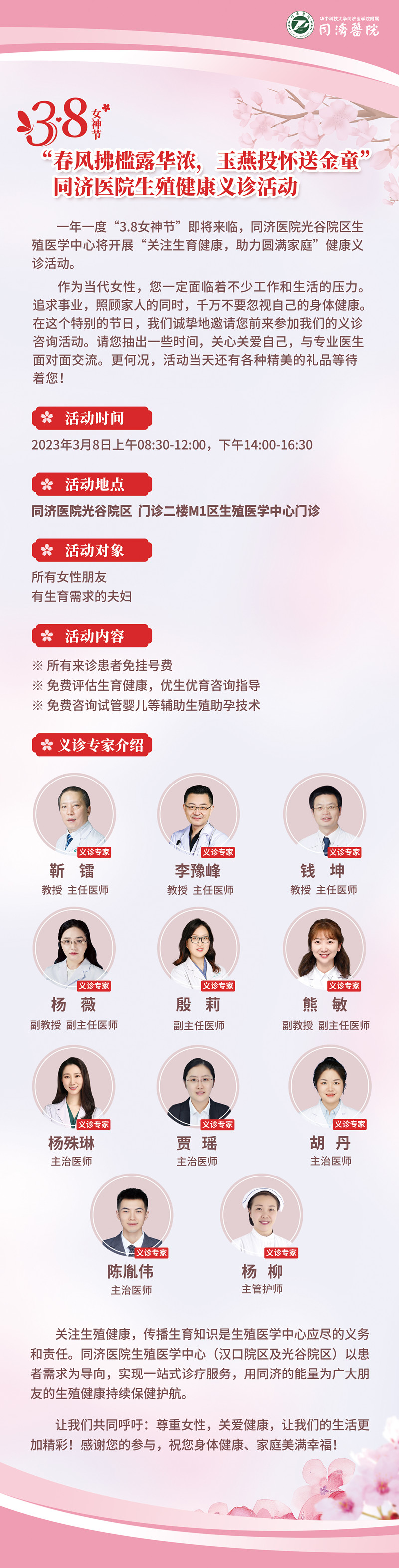 同济医院生殖医学中心健康义诊通知