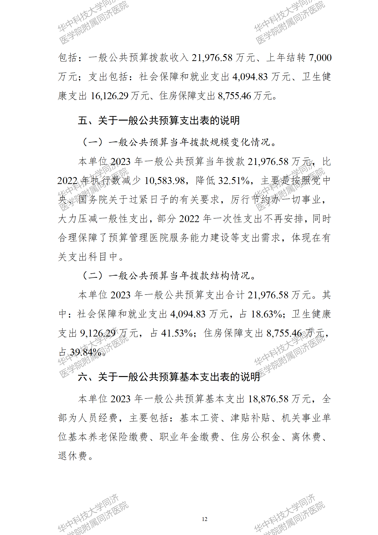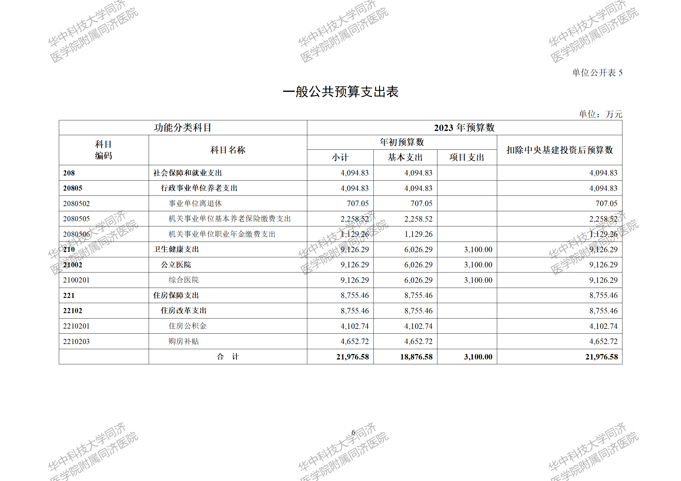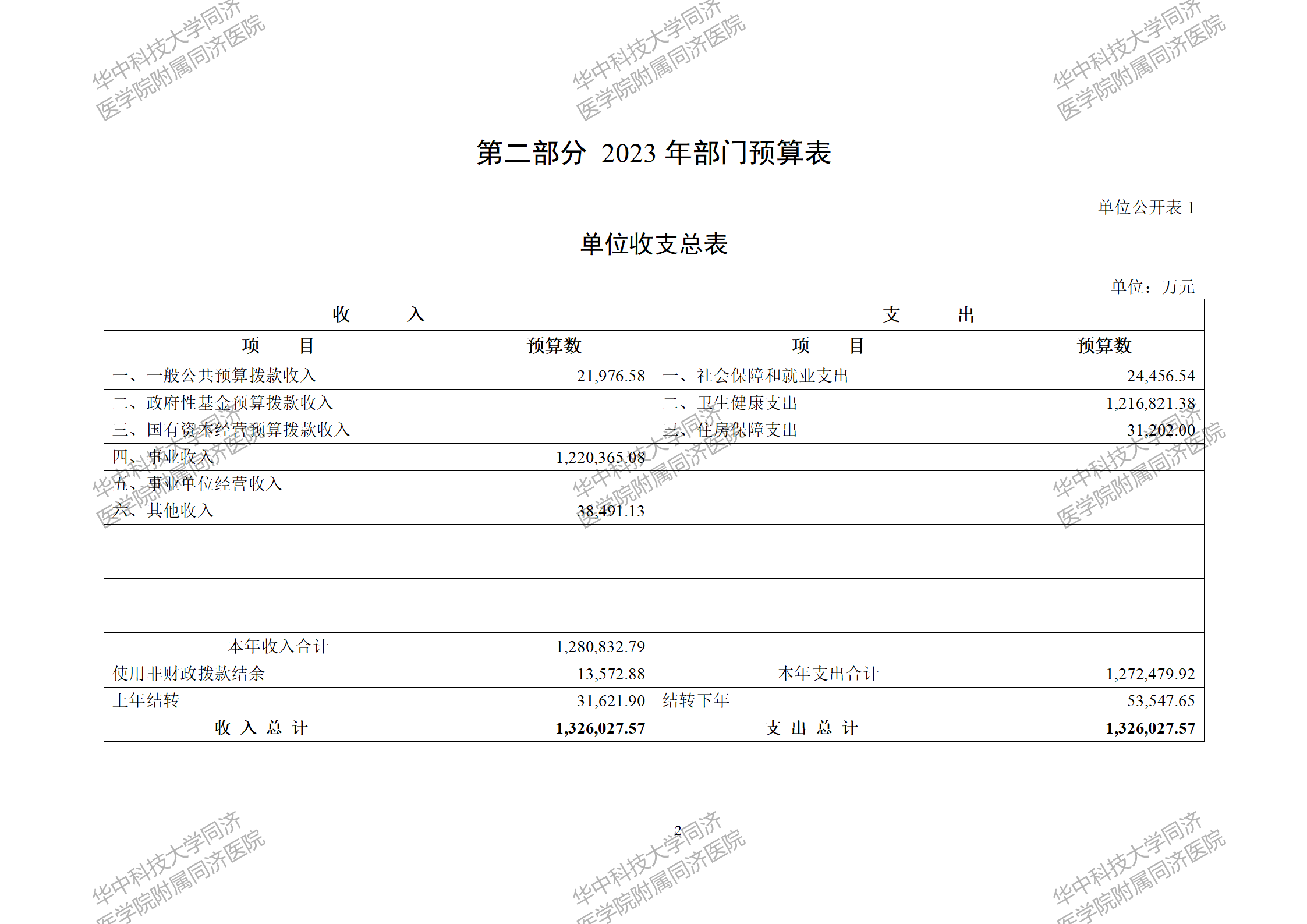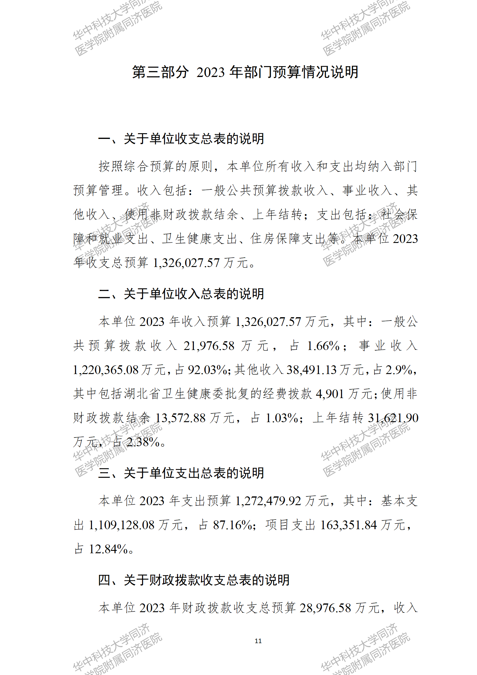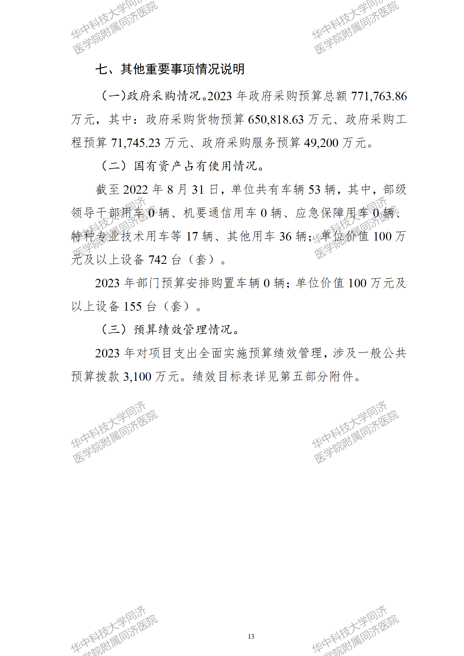 华中科技大学同济医学院附属同济医院2023年部门预算