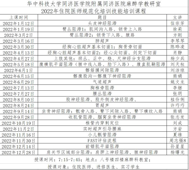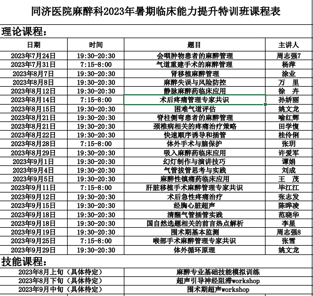 同济医院麻醉科2023年暑期临床能力提升特训班学员招录通知
