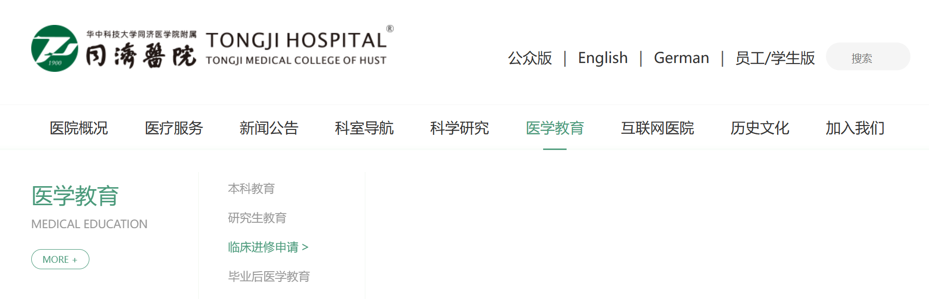 3.报名方法:打开同济医院官网(https://www.tjh.com.cn),依次进入“医学教育”>>“临床进修申请”点击进入,填写相关申请,完成后截图发罗放副主任,快通道办理。