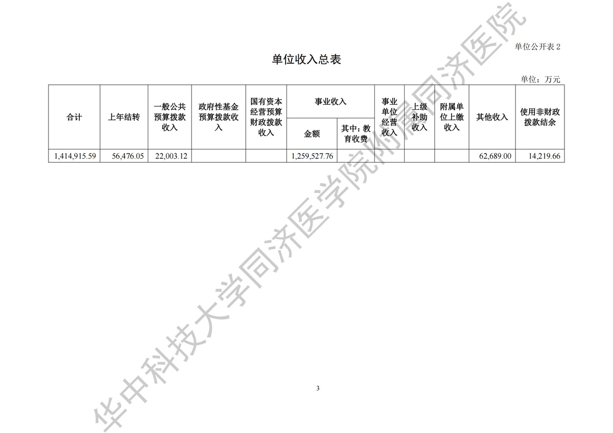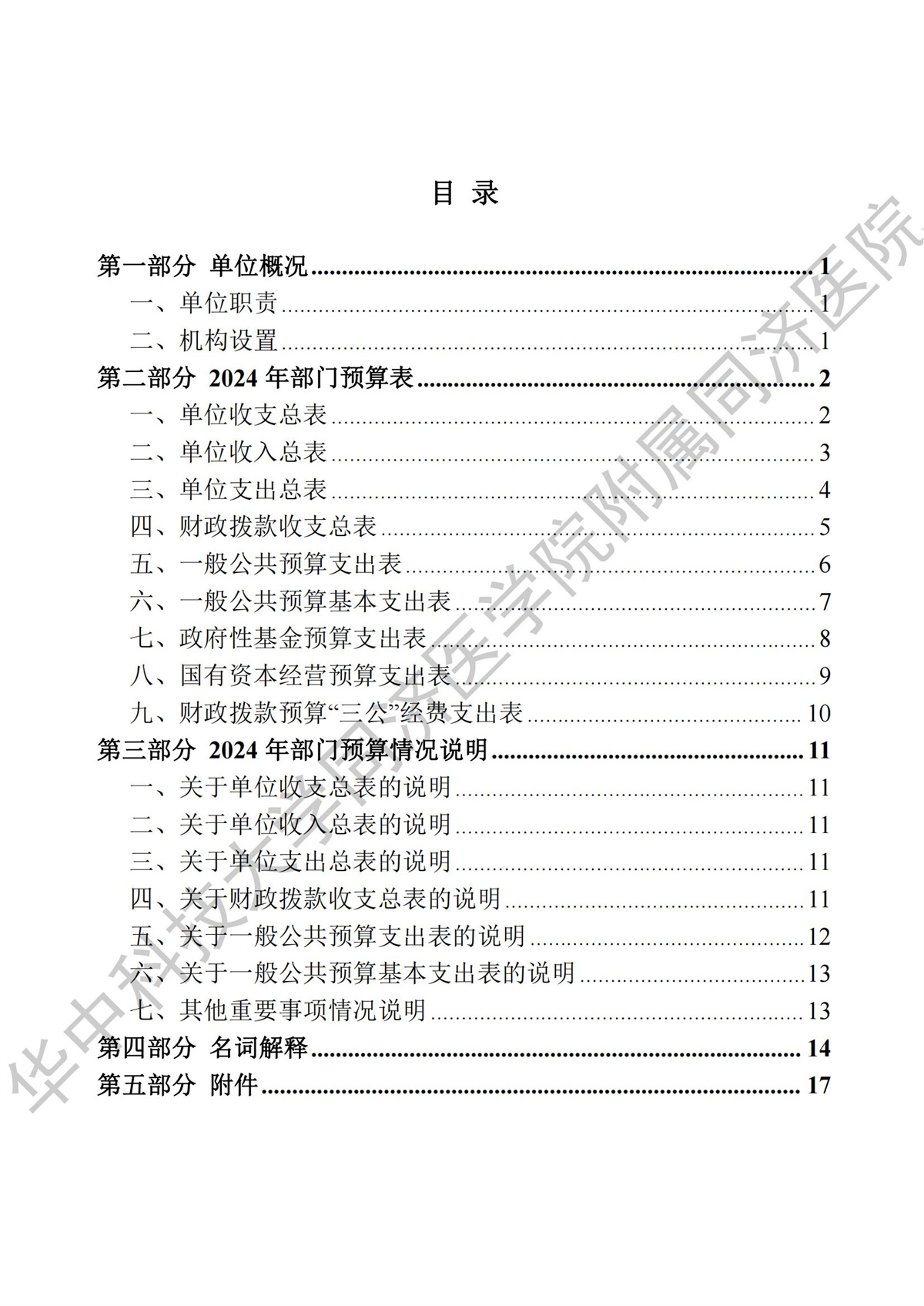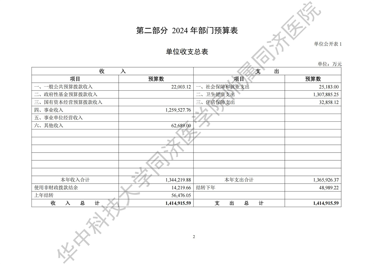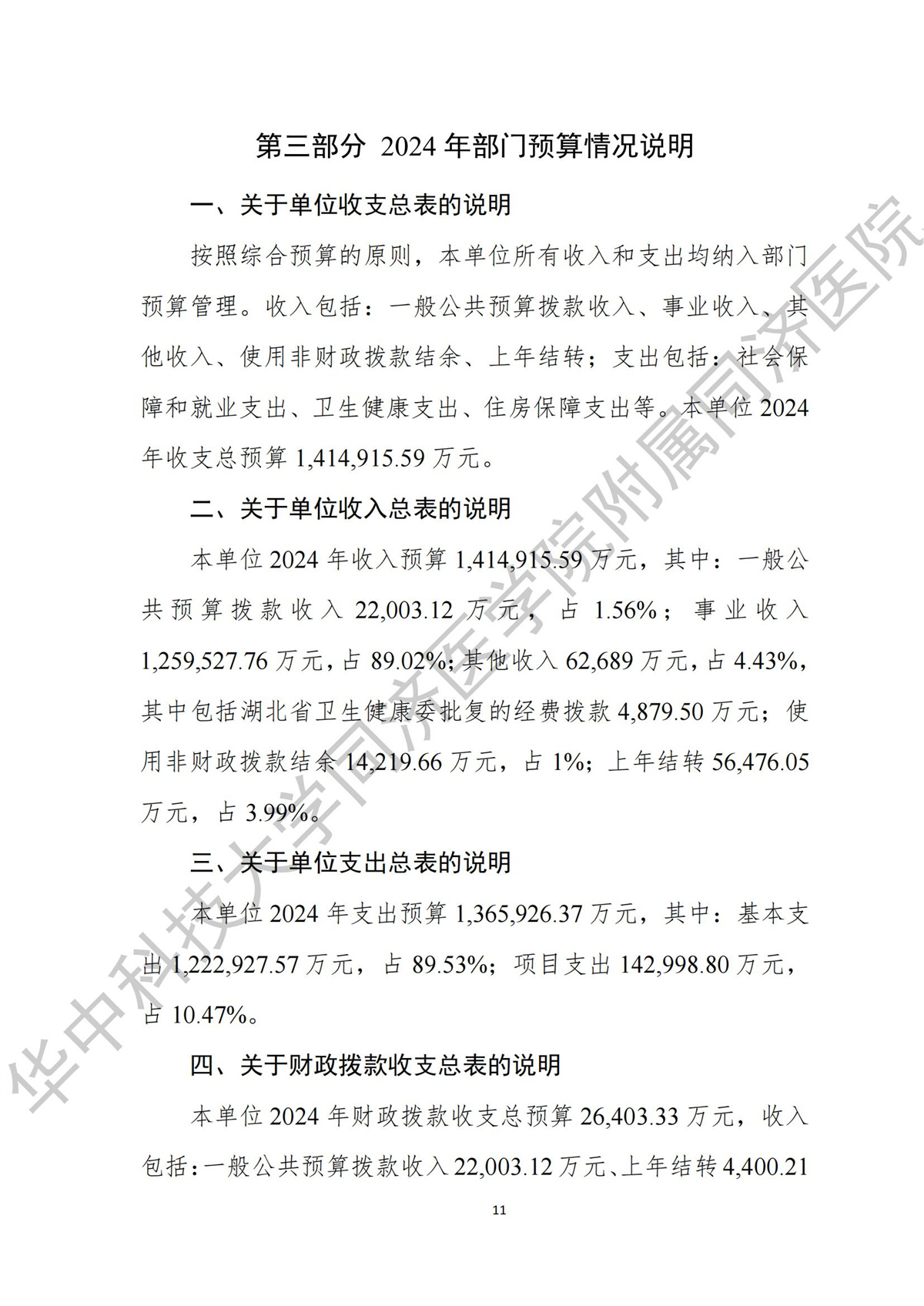 华中科技大学同济医学院附属同济医院2024年部门预算公示