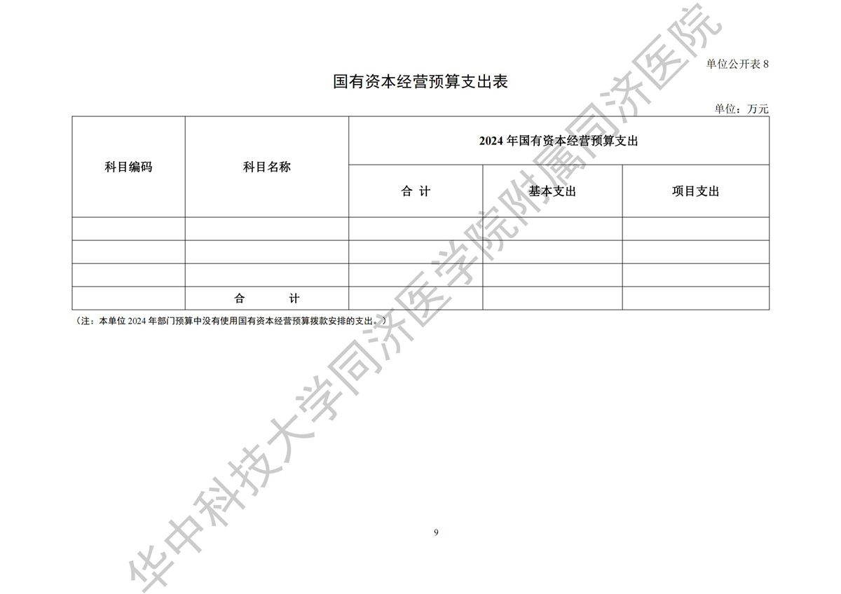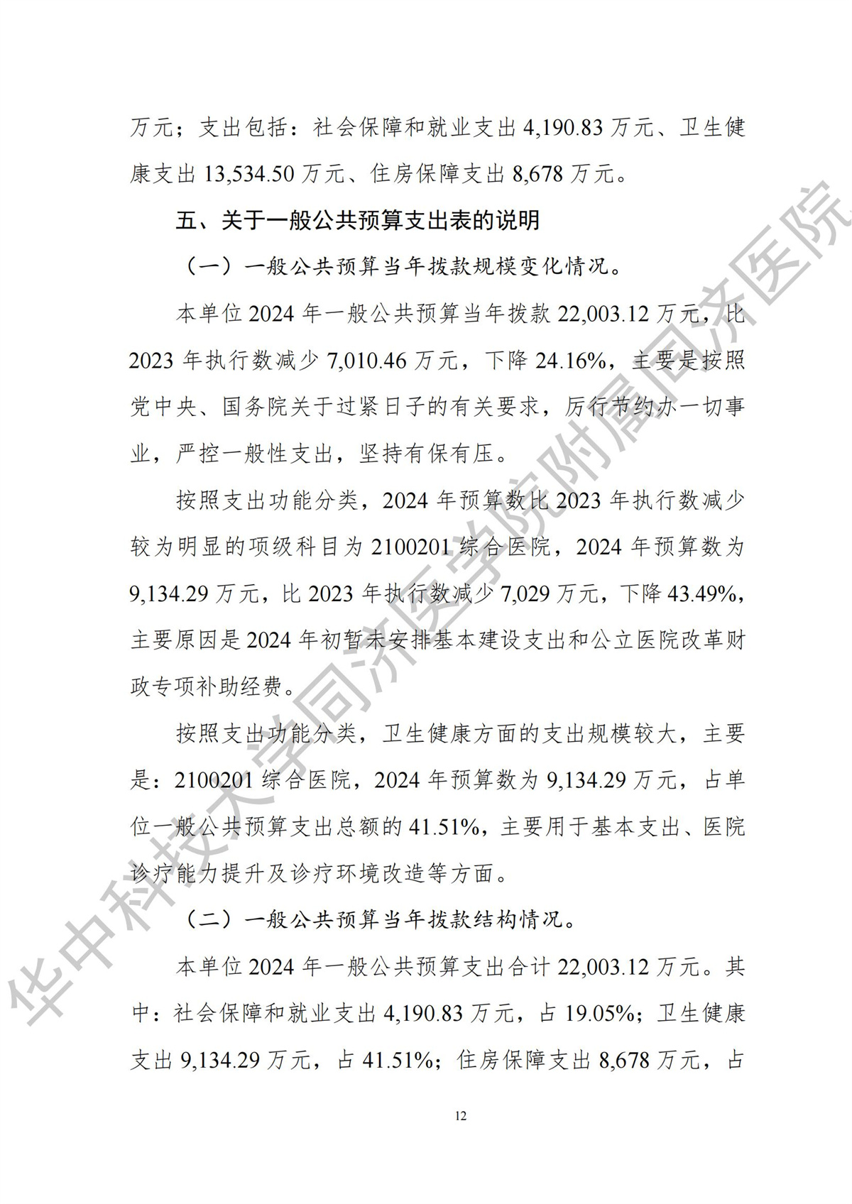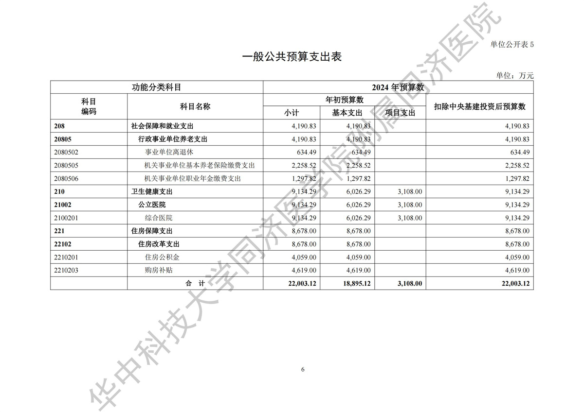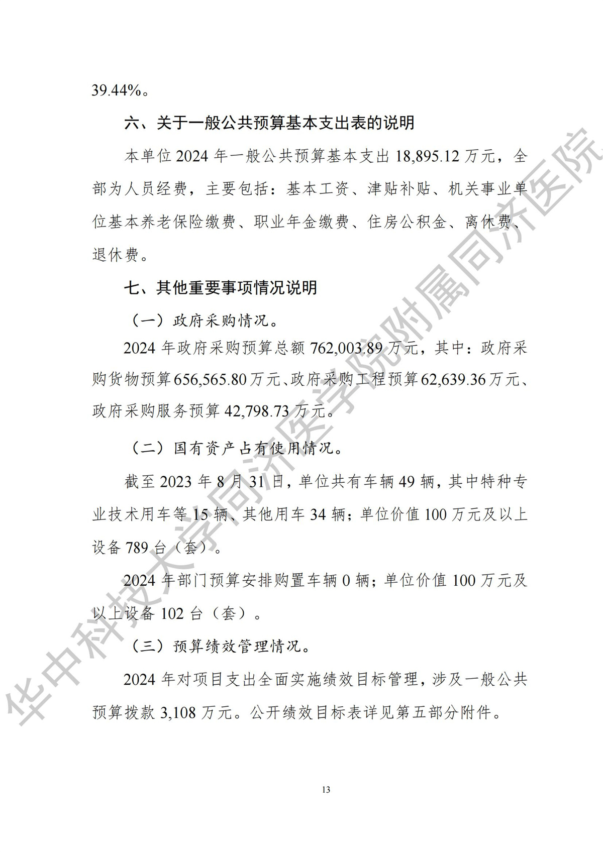 华中科技大学同济医学院附属同济医院2024年部门预算公示