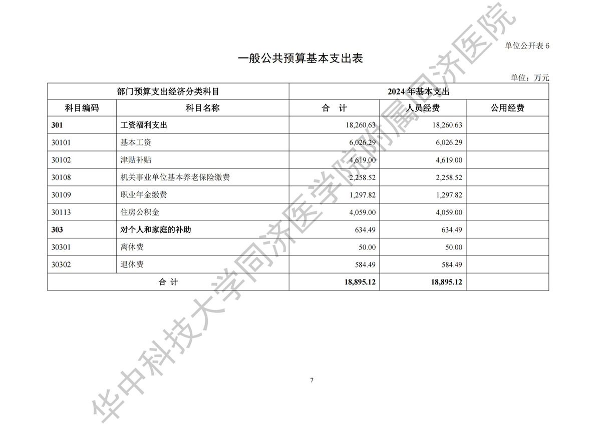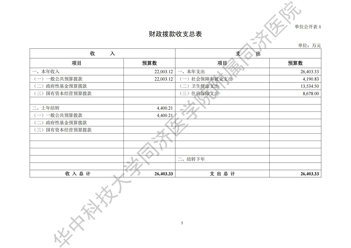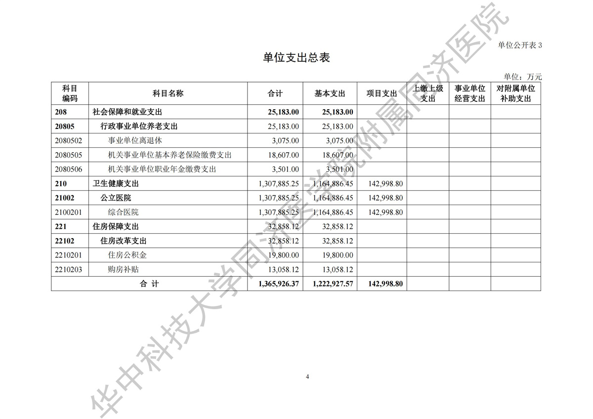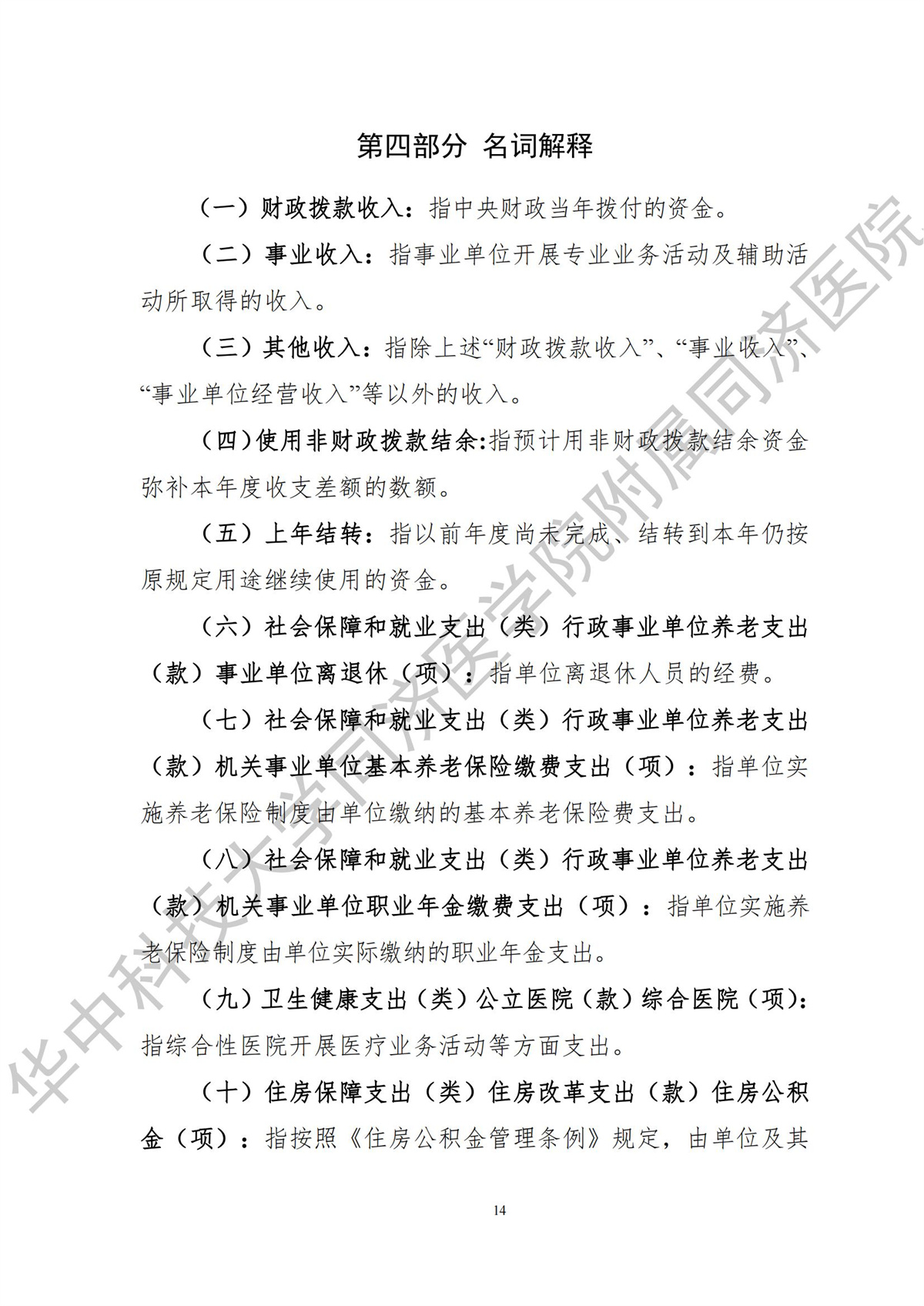 华中科技大学同济医学院附属同济医院2024年部门预算公示