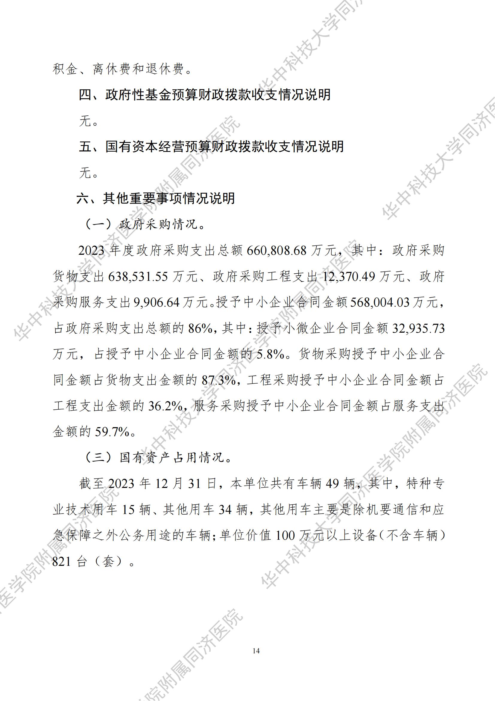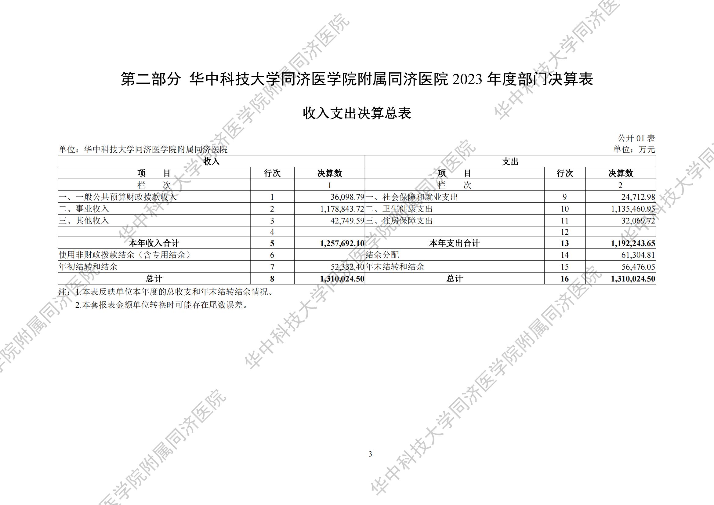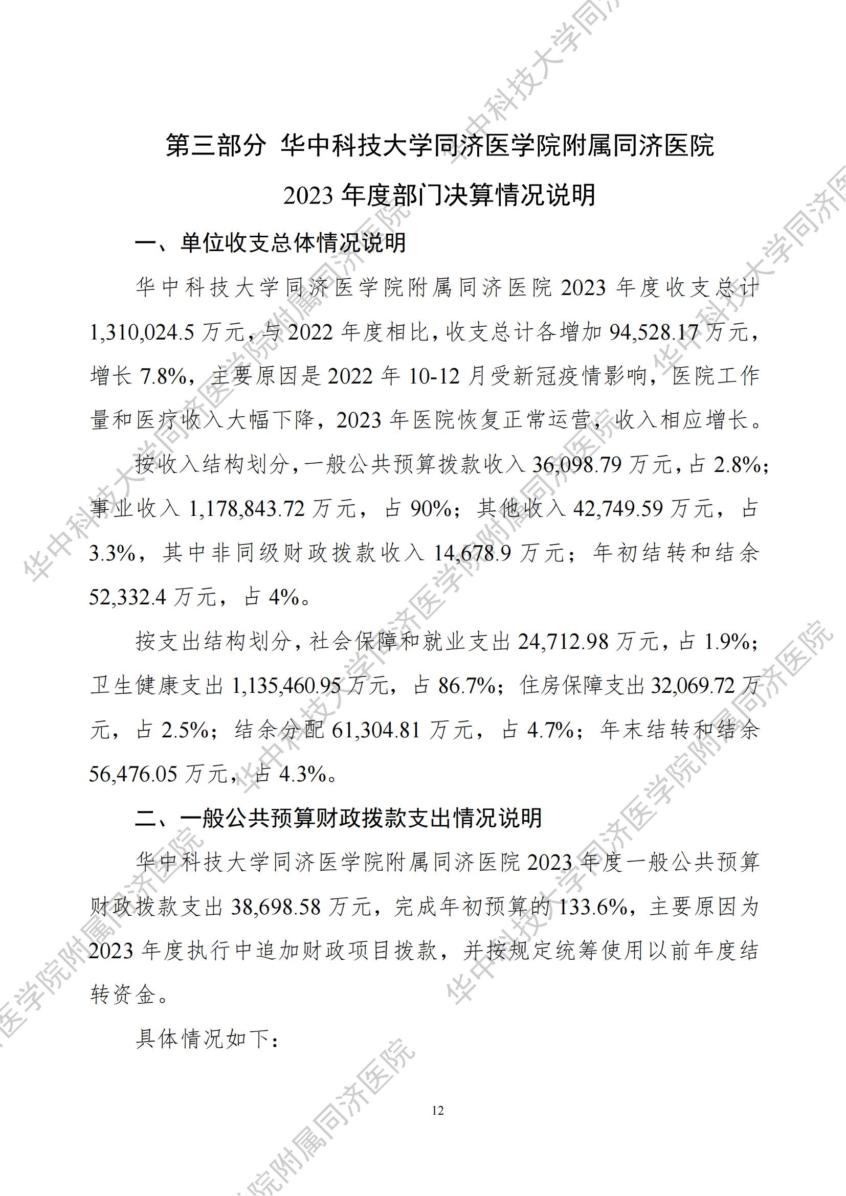 华中科技大学同济医学院附属同济医院2023年部门决算公示