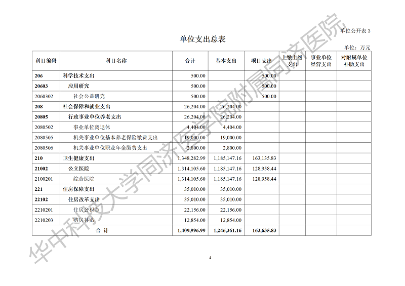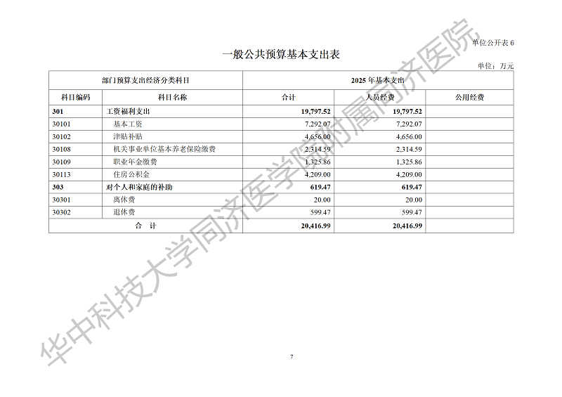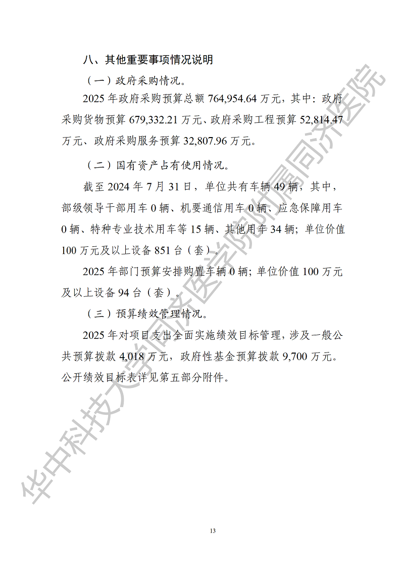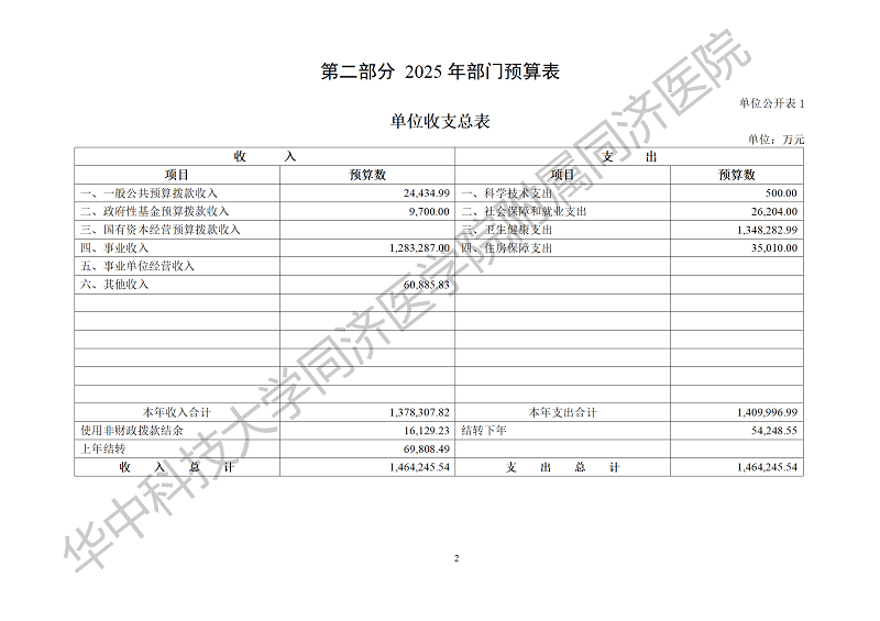 华中科技大学同济医学院附属同济医院2025年部门预算公示