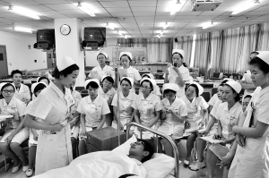 今年年底,同济医院新大楼即将启用,为此,该院引进了800多名新护士,以满足更多患者需求。 “我们要培养的不光是会打针换药的护士,而是能让病人‘享受护理’的专业人员”,黄丽红告诉记者,护士每天的工作,其实很琐碎,也很平凡,也正因为如此,更要求护士不断学习,不断充实自己。“一个护士要学会在每天的平凡琐碎中‘保鲜’,始终以饱满的热情和精神去面对每一位病人,才能算真正合格”。(2011.8.12 武汉晚报)