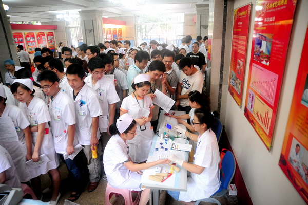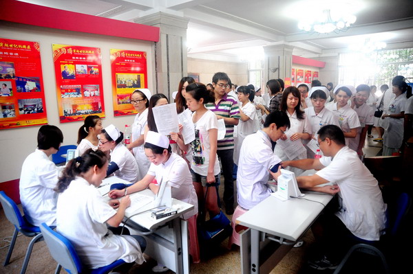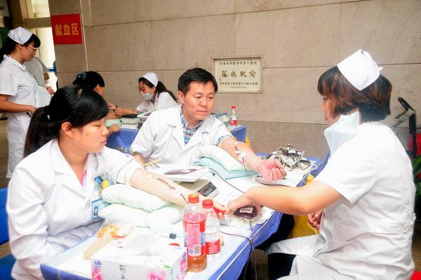 9月13日上午,武汉同济医院1545名医务人员报名参加湖北省卫生系统无偿献血活动,其中,673人无偿献血共计138300毫升。湖北省卫生系统无偿献血活动于9月8日启动,主题是“捐我热血为党旗添彩,奉献大爱铸医者仁心”。健康报 2011.9.14