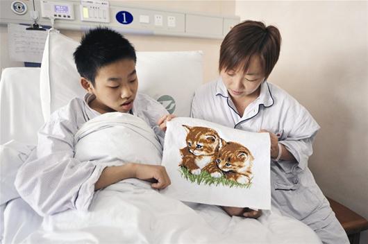 昨日8时许,樊红被推入手术室。儿子樊城一路陪同到手术电梯口,他的右手打着吊针,由父亲樊琼峰托着,左手紧紧握着母亲的手。电梯关上门的时候,母子眼中涌动着泪光。