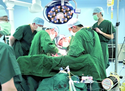 昨日下午4时,樊红的取肝手术结束,器官移植研究所所长陈孝平亲自主刀,切下她的肝脏体积约30%。术后樊红转入重症监护病房。接下来,由副所长陈知水教授为樊城进行肝移植手术。据介绍,因为樊城的肝硬化导致凝血功能不佳,手术中出血后止血的难度较大,术前准备了2000毫升血浆和1000毫升血小板,以防万一。术后,樊城仍需观察是否产生排异反应。(楚天金报 2012.4.21)