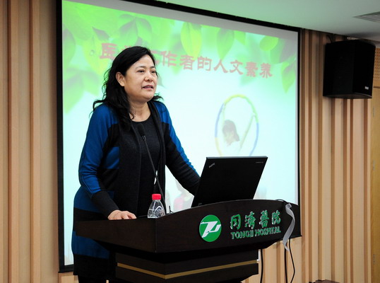 首先,《健康报》主任编辑郑丽莉作了题为《医务人员的人文素养》的讲座。她说,医学关注的主体是人。人文素养,是以人为对象、以人为中心,是对人类生存意义和价值的深切关怀,是我们“价值观”和“人生哲学”的体现,也是科学精神的体现。除此之外,医务工作者更应该注重科学精神。然而,有自然科学能力不意味着具有“科学精神”或总是具有科学精神。医学科技关乎伦理、关乎生命、关乎人性。一个个恐怖的科幻故事和电影,一个个科学狂人的所作所为,让我们感到毛骨悚然,但如果不警惕,也许那就不是虚幻而是现实的灾难。因此,要从人类的大格局来看待科技进展。科学造福人类与否取决于人文精神。作为医务人员,我们更要有人文情怀,医者仁心仁术,仁者爱人。对患者尊重,对生命敬重也是对自我的尊重,正是人文情怀的体现。