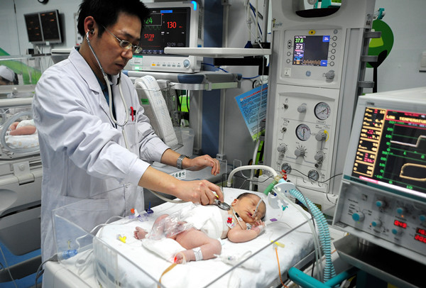 11点03分,新生儿生命体征正常,呼吸机给氧,断离脐带,即刻被送入新生儿病房。