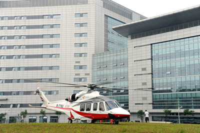 会后,通航公司的一架AW139SP型医疗救援直升机经有关部门批复后,载人在光谷院区西南角临时停机坪成功起降,这标志着同济医院光谷院区直升机卫生应急救援首航圆满成功,也意味着我院直升机空中院前急救体系建设迈出了坚实的一步。