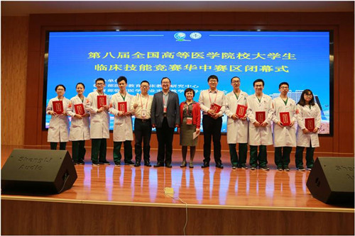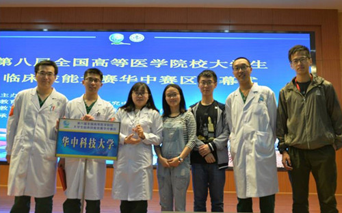 第八届全国高等医学院校大学生临床技能竞赛华中赛区竞赛于2017年4月15日在湖北医药学院落下帷幕,来自湖南、湖北、河南19所高校的20支队伍参加角逐,第二临床学院的4名学生刘康、袁帅、康红磊、刘婕代表华中科技大学参赛,经过20进12、12进8、8进4、4进2四轮的激烈角逐,最终以总成绩第一名荣获团体特等奖及5个单项奖,顺利拿到全国总决赛入场券。