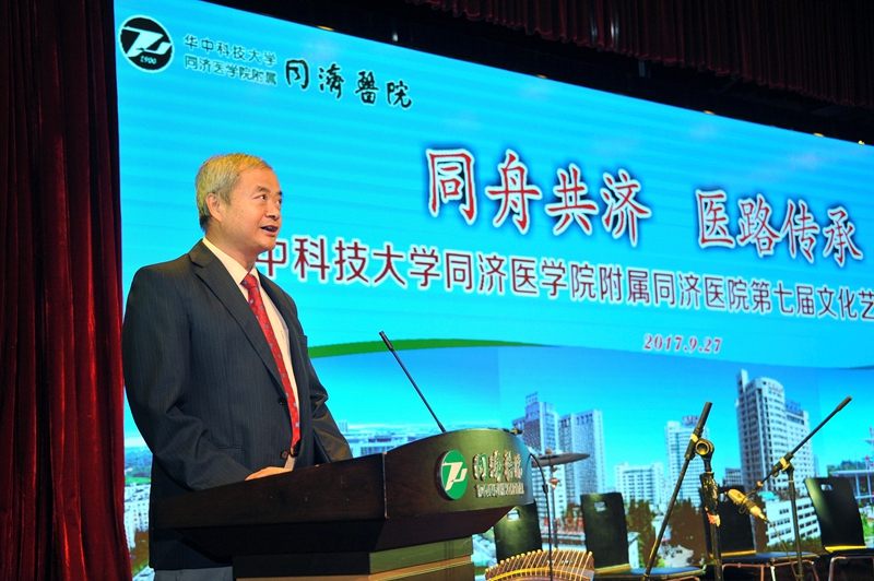 院长徐永健讲话并宣布同济医院第七届文化艺术节开幕。他说,第七届文化艺术节是丰富职工文化生活、推进医院文化建设的一件大事,更是坚定同济文化自信的重要举措。习近平总书记指出:“我们要坚持道路自信、理论自信、制度自信,最根本的还有一个文化自信。”“文化自信,是更基础、更广泛、更深厚的自信”。同济医院已经走过了117年,几代同济人秉承格物穷理、同舟共济的价值理念,书写了持续发展、追求卓越的壮丽篇章,同济文化的传承与弘扬发挥着不可替代的作用。坚定同济文化自信,就是要以习近平总书记的重要讲话为指导,进一步挖掘同济文化内涵、弘扬优良传统、推进内涵发展,更好地服务广大人民群众。