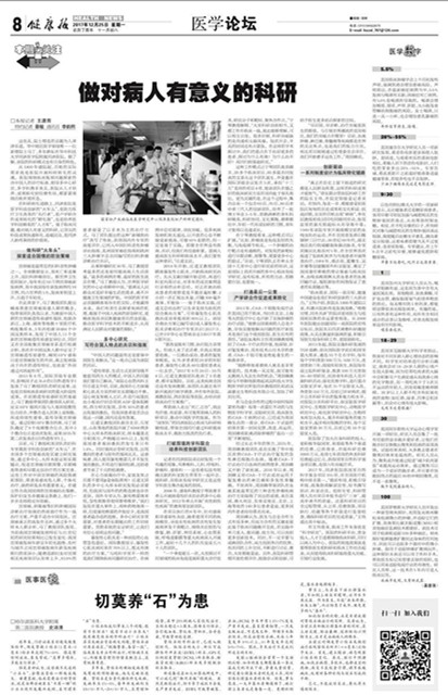 12月25日,由国家卫计委主管的全国性卫生行业报《健康报》医疗论坛版以“做对病人有意义的科研”为题深度解读了同济医院的科研模式。